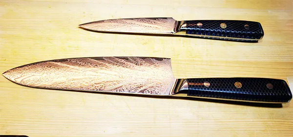 私の周りは「片刃包丁」を使用しているパターンが多いようで「両刃のVG10号ダマスカス包丁」を実際に使わせると「怖いくらい切れる」と言っていました。