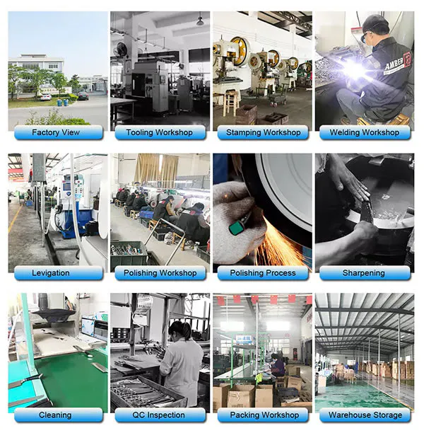 陽江琥珀社は設立から12年で技術チーム、高度な生産機械、強力な技術力と完成した管理システムを備え、自動パンチング・熱処理・自動で設定された高度なキッチンナイフの生産ラインを備えた近代的な工場を持っています。