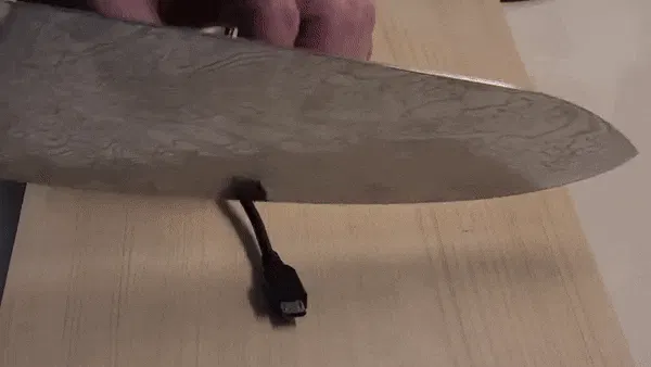 樹脂でコーティングされた固いUSBケーブルも簡単に切り刻めます。