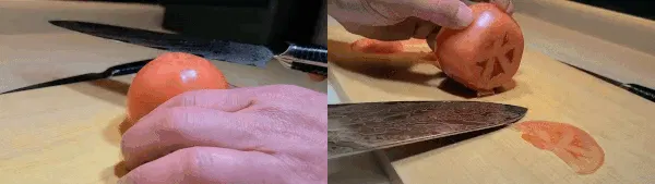 ※切れ味を表現するために行っておりますので食材以外には使用しないで下さい。