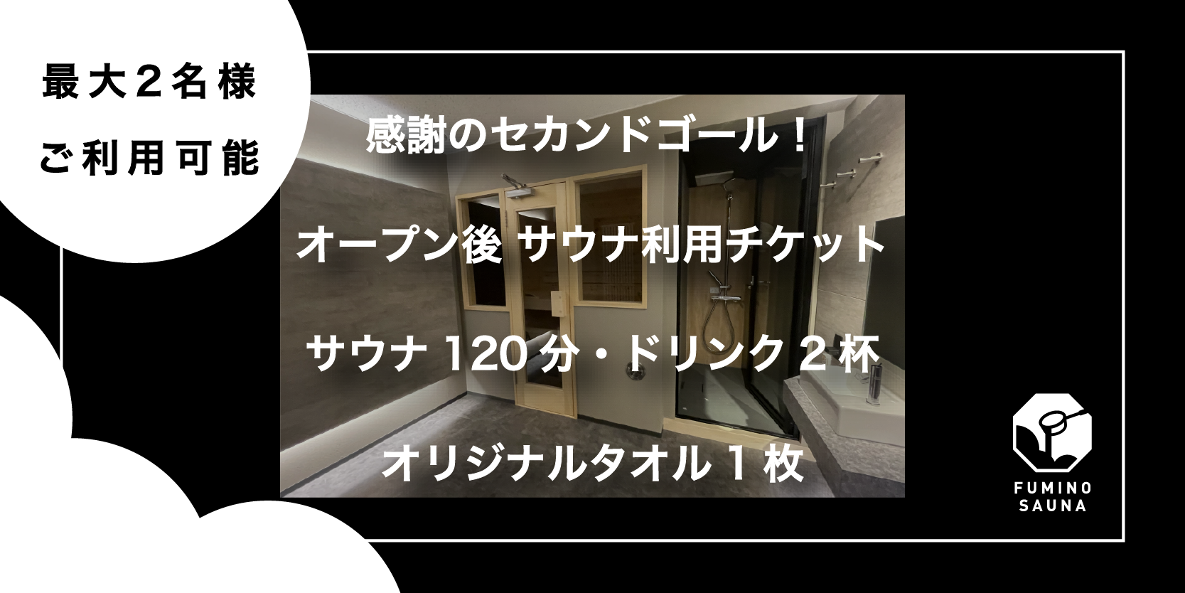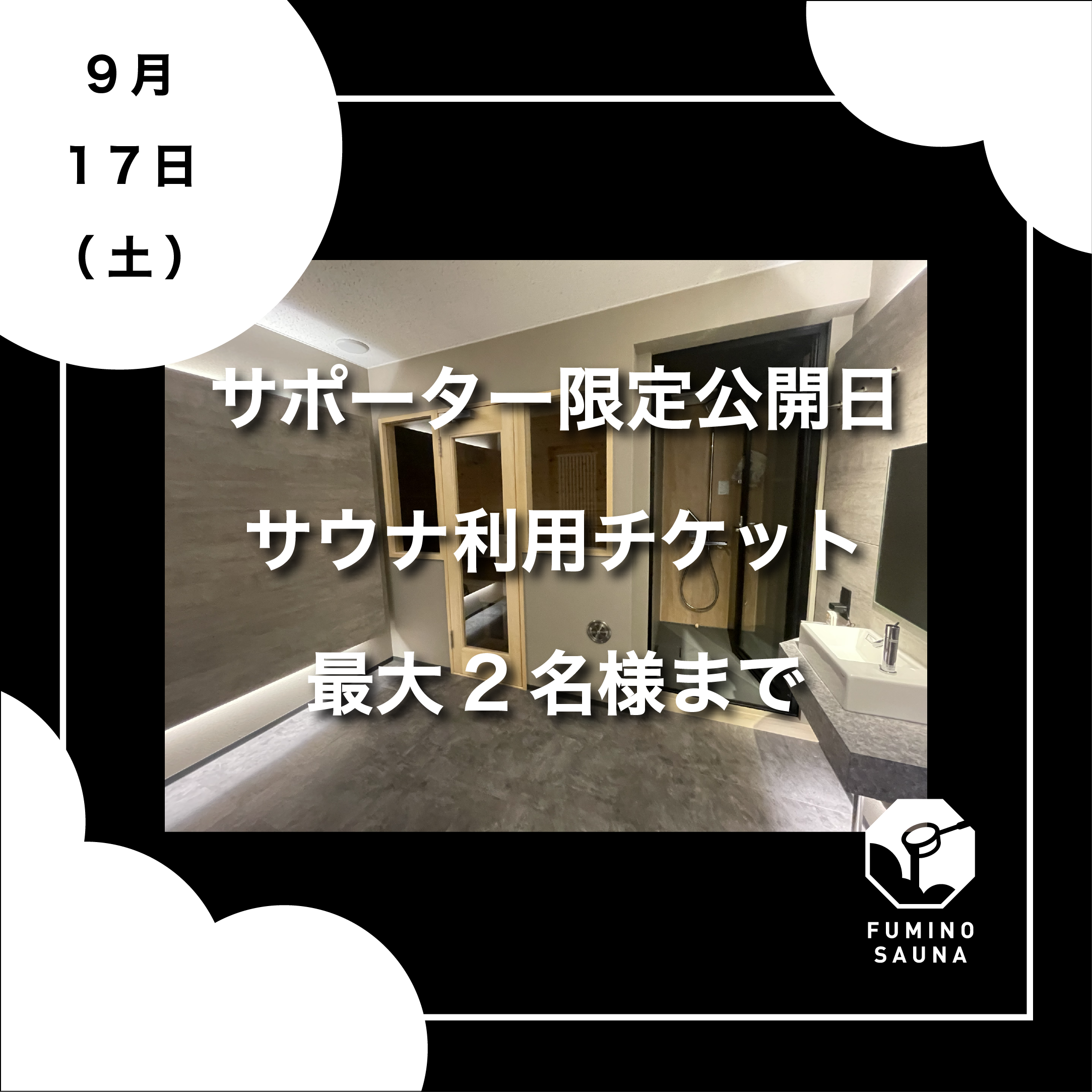 ◆3,000円 9月17日(土)サポーター限定特別公開日 最大2名様まで利用可・貸切サウナ利用チケット1枚