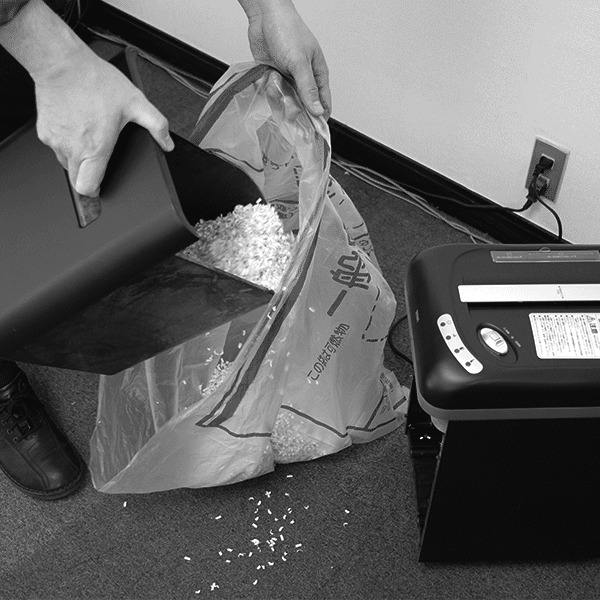 シュレッダーはゴミを捨てる時、散らばらないようにするのはとても大変。紙くずが散らばった場合は掃除も面倒です。