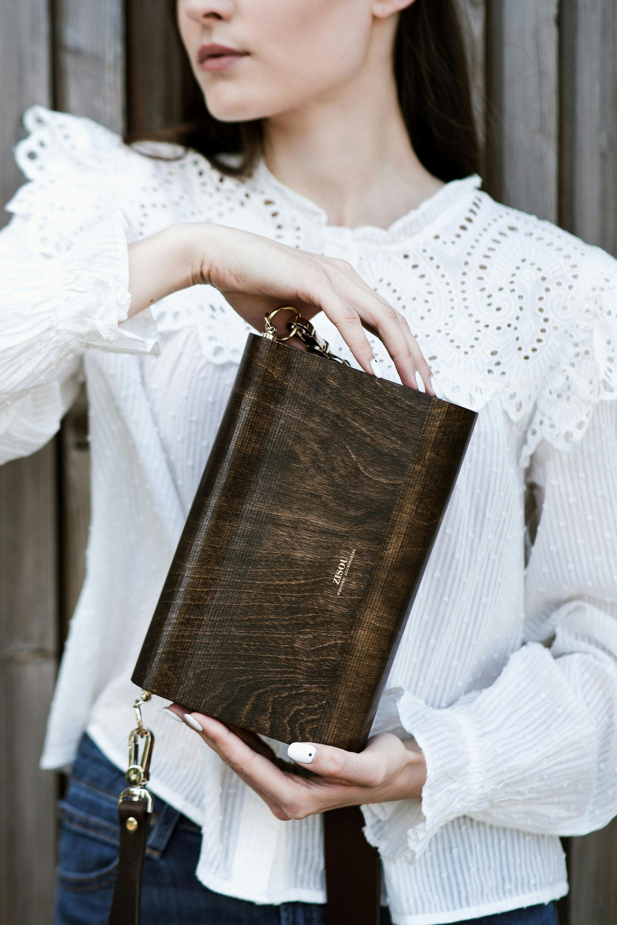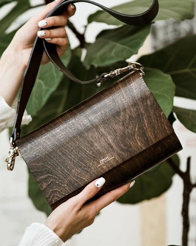 ZISOUバッグは限定シリーズで作成され、各モデルは年輪の異なる配置により独特な模様を持っています。製作プロセスは、ミニマリズムとクラシックなシンプルさの精神で伝統的な技術と大工の技に基づいています。