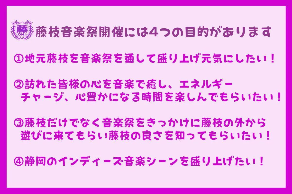 藤枝の若い世代の人たちの力づけになったり、藤枝の音楽シーンを盛り上げたい!