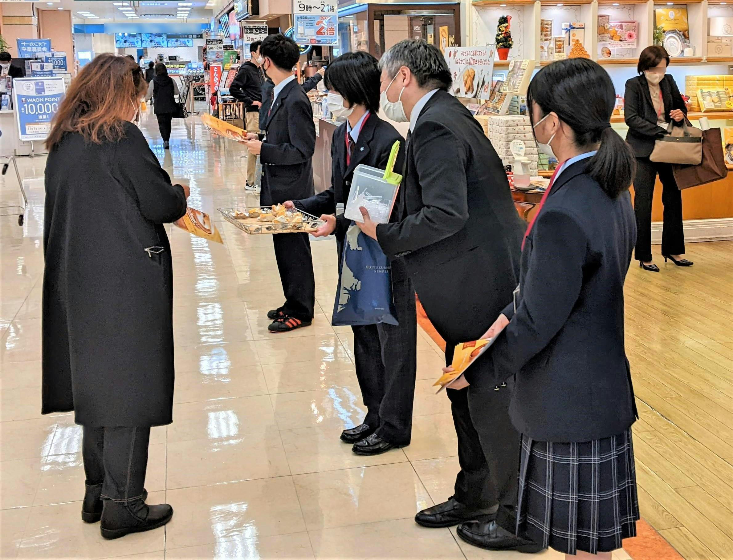 発売期間中はメンバーが交代で店頭に立ち、買い物に来たお客さんにチラシを配るなどの販売促進活動を行いました!