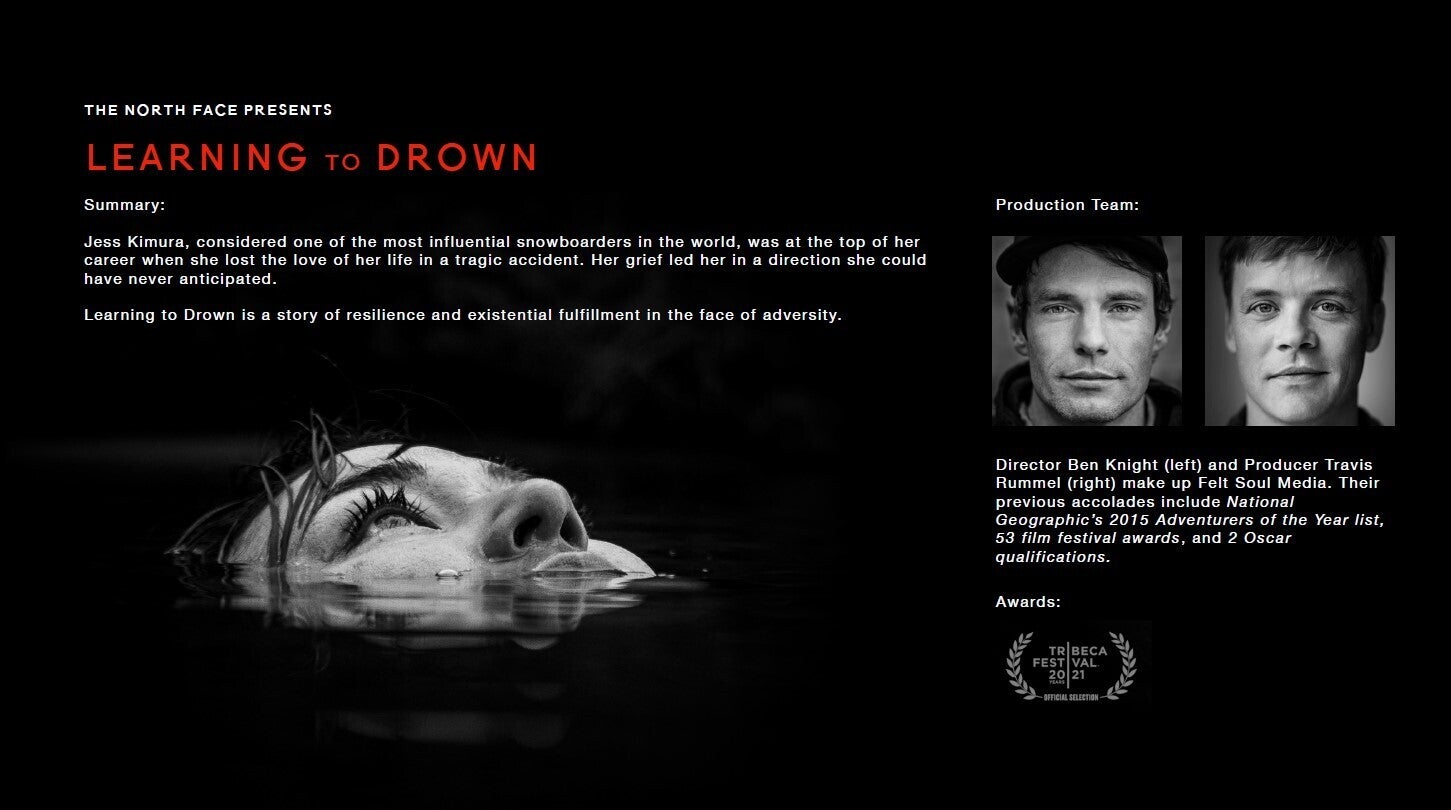 世界で最も影響力のある女性スノーボーダーの一人と考えられているジェス・キムラ。ブリティッシュコロンビア州ヴァーノンで育ったジェスにとって、スノーボードをすることは人生の一部であり、あらゆる難易度の高いトリックを全身全霊をつくし成功させてきた。しかし、そんな輝かしい彼女のキャリアに暗い影を落とす大きな怪我を負ってしまう。