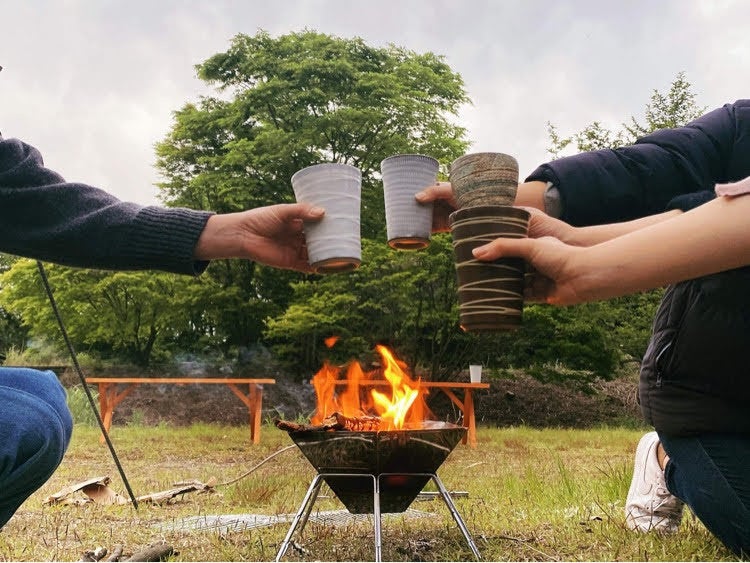 名物の小石原焼きのカップでクラフトビールを飲むこともできます 。