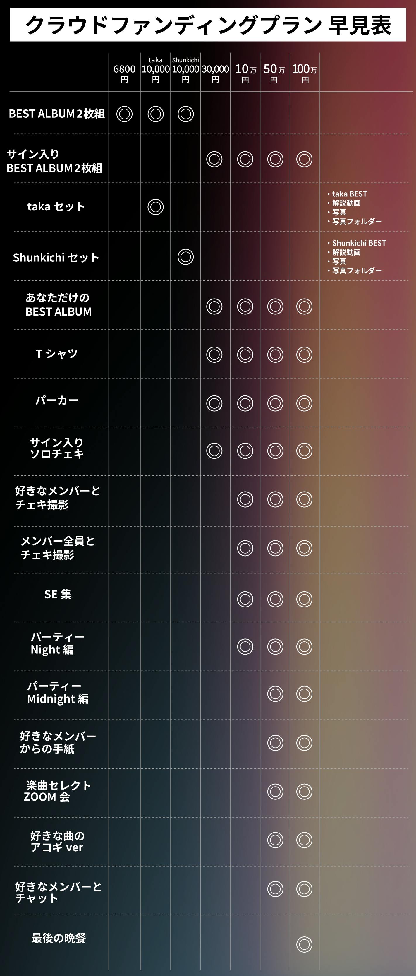 Q:3万円プラン,10万円プラン,50万円,100万円プラン特典『あなただけのBEST ALBUM』の選べる楽曲の一覧を知りたいです。