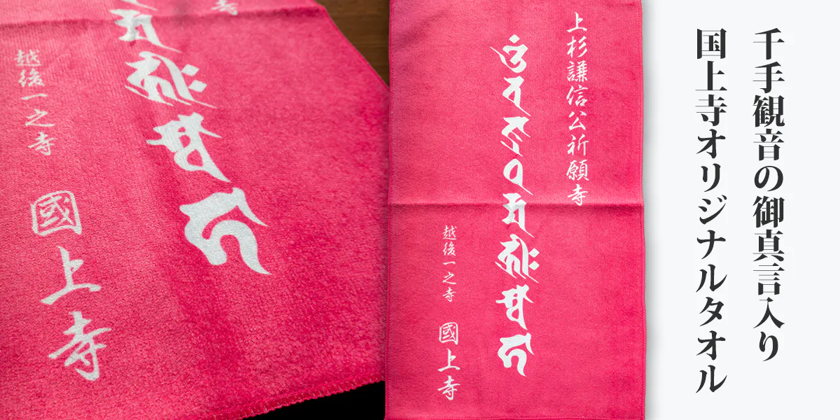 千手観音の御真言入りのオリジナルタオルです。ビビットなピンク色で肌触りのよいタオルです。