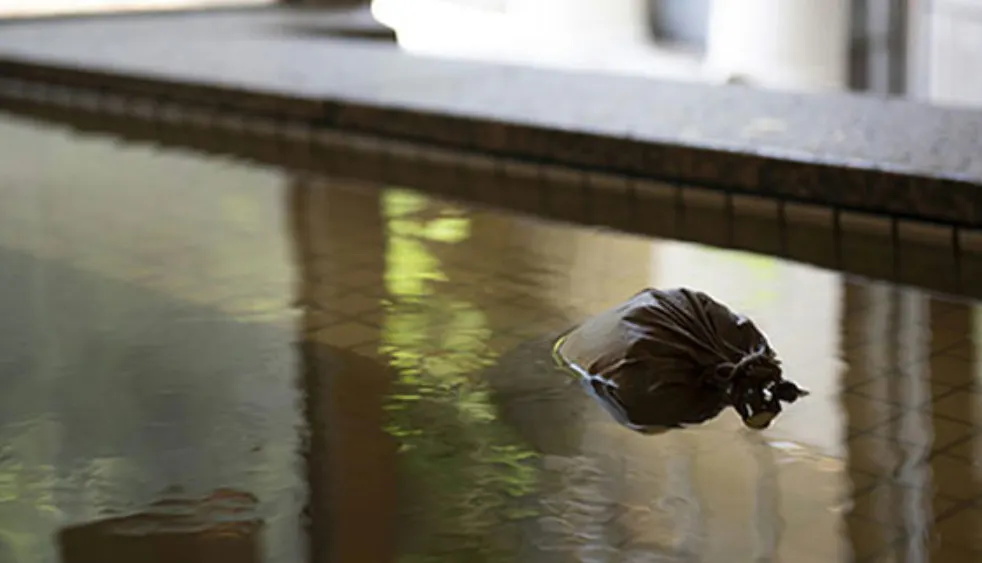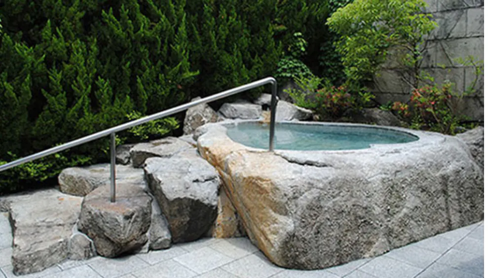 ヨモギを主体にセンキュウ、チンピ、シャクヤク、ハッカ、ジュウヤク、トウキと7種類の薬草を使用。効能効果は冷え性、腰痛、あせも、リュウマチ、神経痛、疲労回復、湿疹、しもやけ・荒れ性です。一枚岩の花崗岩風呂は日本最大級!花崗岩には天然パワーも!花崗岩には渇簾石(かつれんせき)という鉱物が含まれ、その作用は、ラジウム・ラドン泉として効果があると言われています。