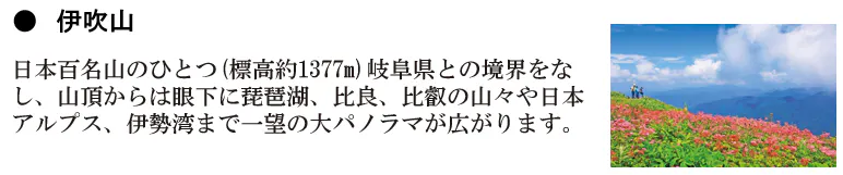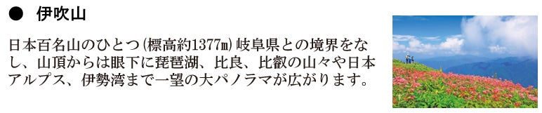 伊吹山、琵琶湖の大自然をこの機会に体験してください。