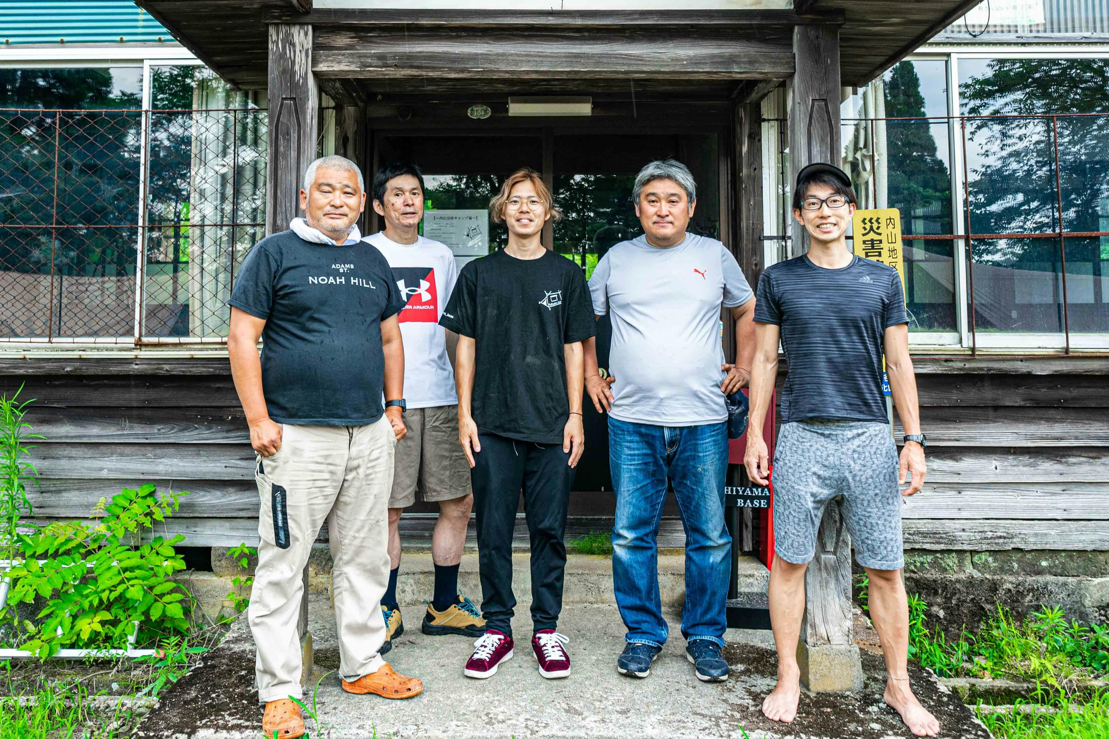 『このままだと廃村だ!何とかしようよ!動こうよ!』と声を上げてくださった内山出身の「奥田さん」を中心に、内山分校キャンプ場の管理人の私「タケダ校長」、現在も内山に住んでおられる「奥田さんのお兄さん」(工務店社長)、複数の移動ビジネス(キッチンカー、移動サウナ)を行う「宮波さん」、キャンプ大好き「前川さん」(ゆめまき社長・元サンフラワーズガーデンボーカル)が一つのチームとなり内山を再生させようと日々奮闘しています。