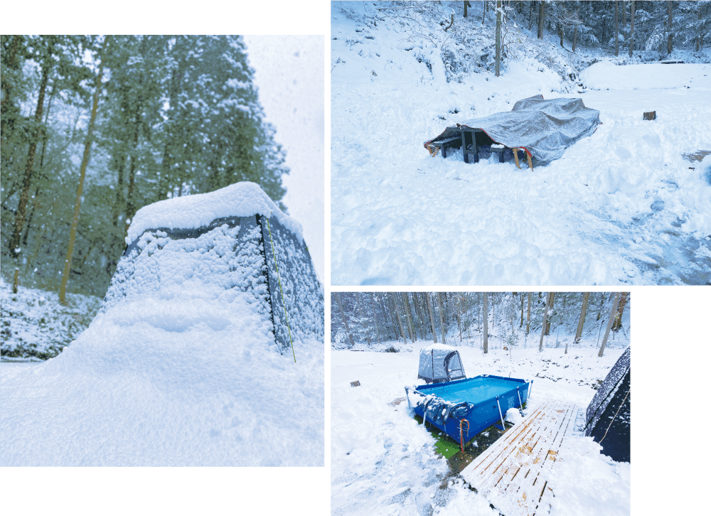 もちろん自然には厳しい面もあります。特に冬の京北冷え込みが厳しく、今年の冬数十センチ積もる日が何日かありました。現状、 アースサウナはテントサウナですが、積もる雪が降るとテントは収めないとつぶれてしまいます。サウナ小屋があることでより過ごしやすくしたい。サウナのオンシーズンを迎える今年の冬に向けて、ゲストをお迎えできるように、今回チャレンジします。