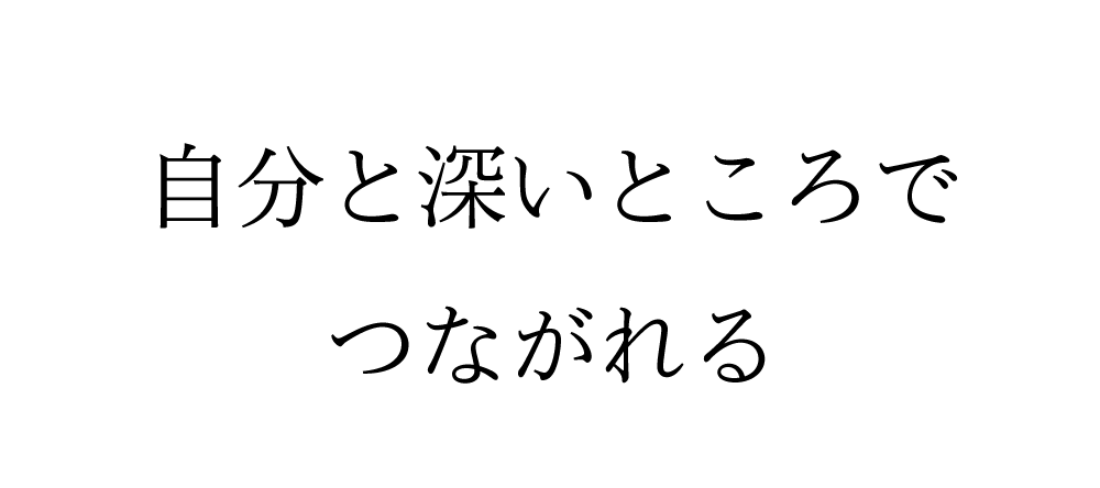 ゆるまり、解き放つ。深く自分とつながった人同士が、さらにつながることで、深いところで結びつきが生まれます。いつのまにか身にまとっている重い鎧を脱ぎ捨て、素の自分になる。そんな人同士との会話は、表面を撫でるようなものではなく、深くゆたかなものになります。