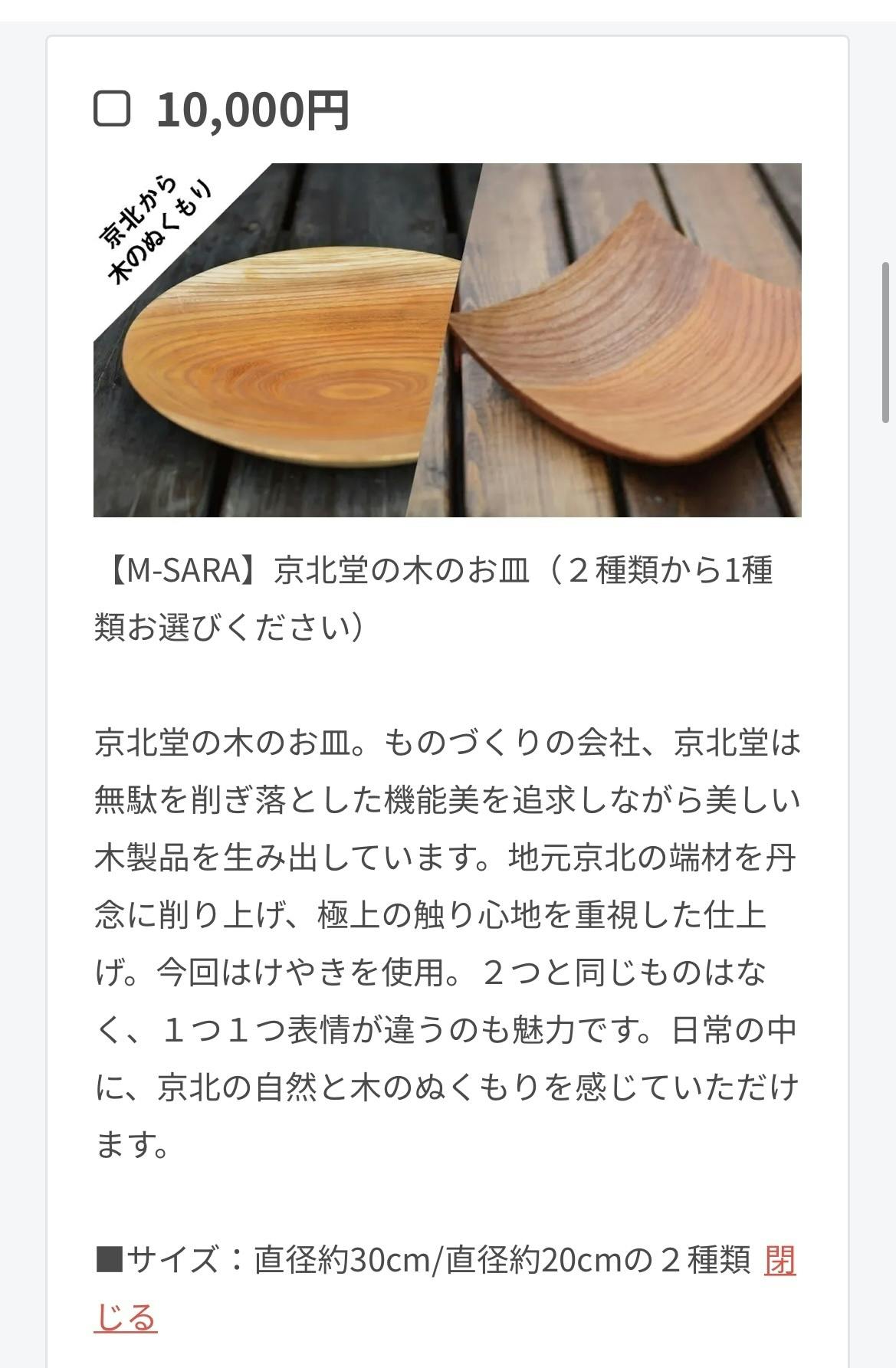 リターンの1つだった、京北堂の木のお皿「M-SARA」がOUT OF STOCK、完売となりました!!