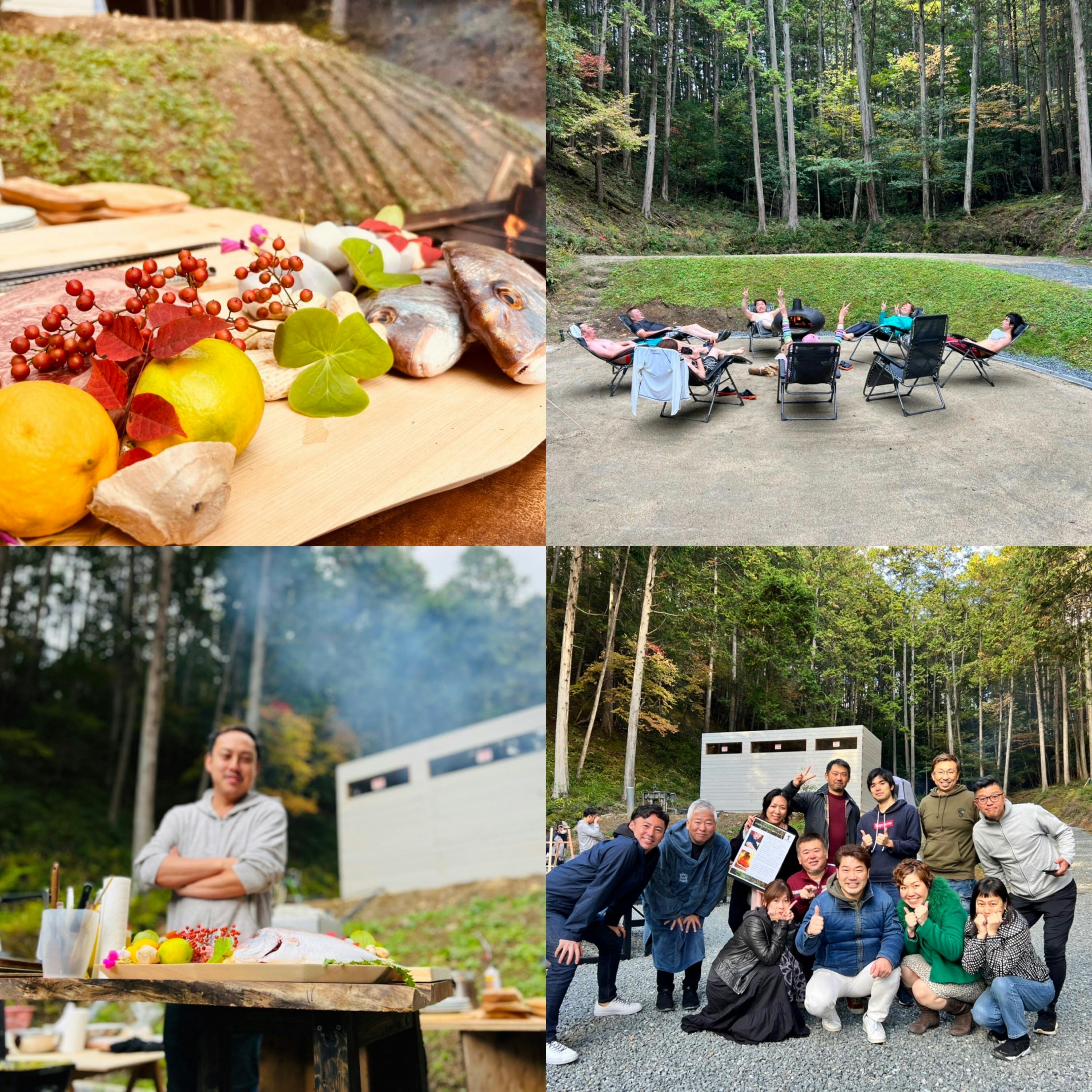 11/5土曜日、クラウドファンディングリターンイベント「アースサウナ×森のレストラン」第2回目が開催されました!京北の山々が秋色に染まる中、今回もお天気にも恵まれたサウナ日和に、シェフポールさん(松岡氏)の他では味わえない【スペイン・バスク式BBQ】で、ゲストの皆さま心もお腹も大満喫していただけました!!