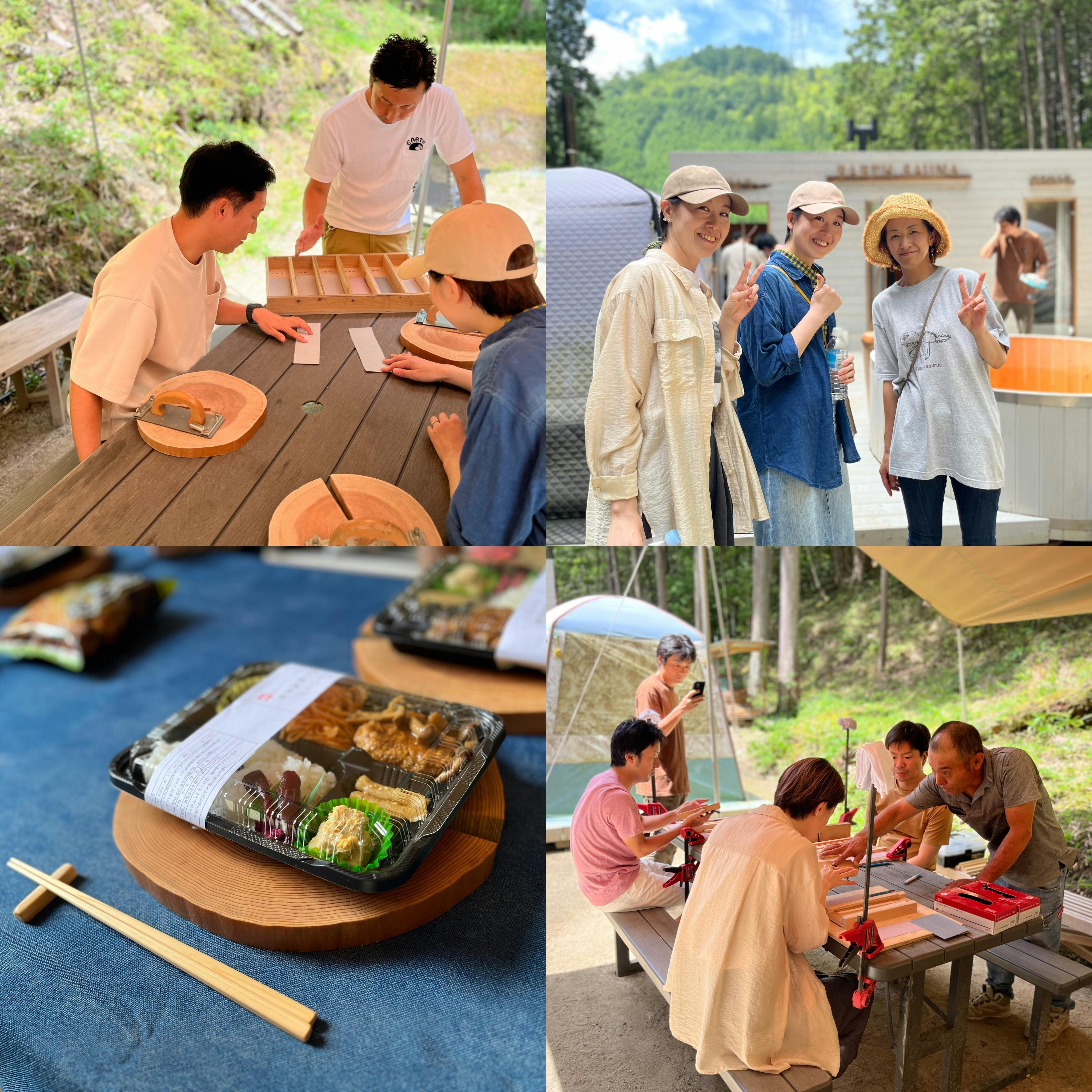 作りたてのMyお箸でお昼ご飯を食べて、午後からは森林浴に癒されながらアースサウナで心身共にゆったりとしたリラックスタイムを過ごしていただくプランでした。