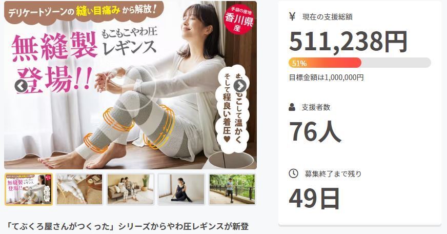 ご支援者の皆様お世話になっております。プロジェクトを担当しております多田です。何回かに分けてやわ圧レギンスの魅力を活動報告にてお伝えできればなと思います。今日は無縫製についてのご紹介です。本商品は丸編み機という元来、手袋を作る際に使用していた機械で作られ、1枚ものの生地で作られたかの様な立体的な編み方になっています。このような製法のことを無縫製・ホールガーメントとも言います。無縫製で作られていない商品は、例えばレギンスであれば右足・左足のパーツを別々に作り、後で股部分を縫い合わせていることが殆どかと思います。その際に気になるのが、股部分の縫い目ですよね。ですが本商品にはこのような縫い目はございません。このような理由から、本商品は快適に着用していただけるわけです。