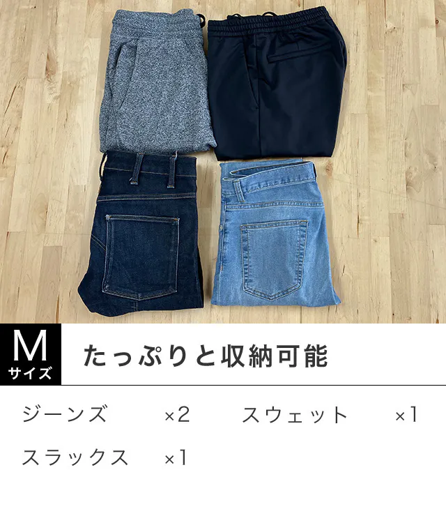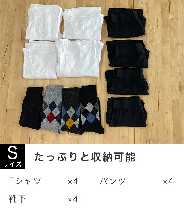 サイズの異なる3つのバッグ(S・M・L)があり、衣類のしわを防ぐ特別なデザインが施されています。
