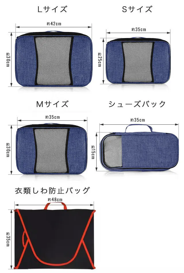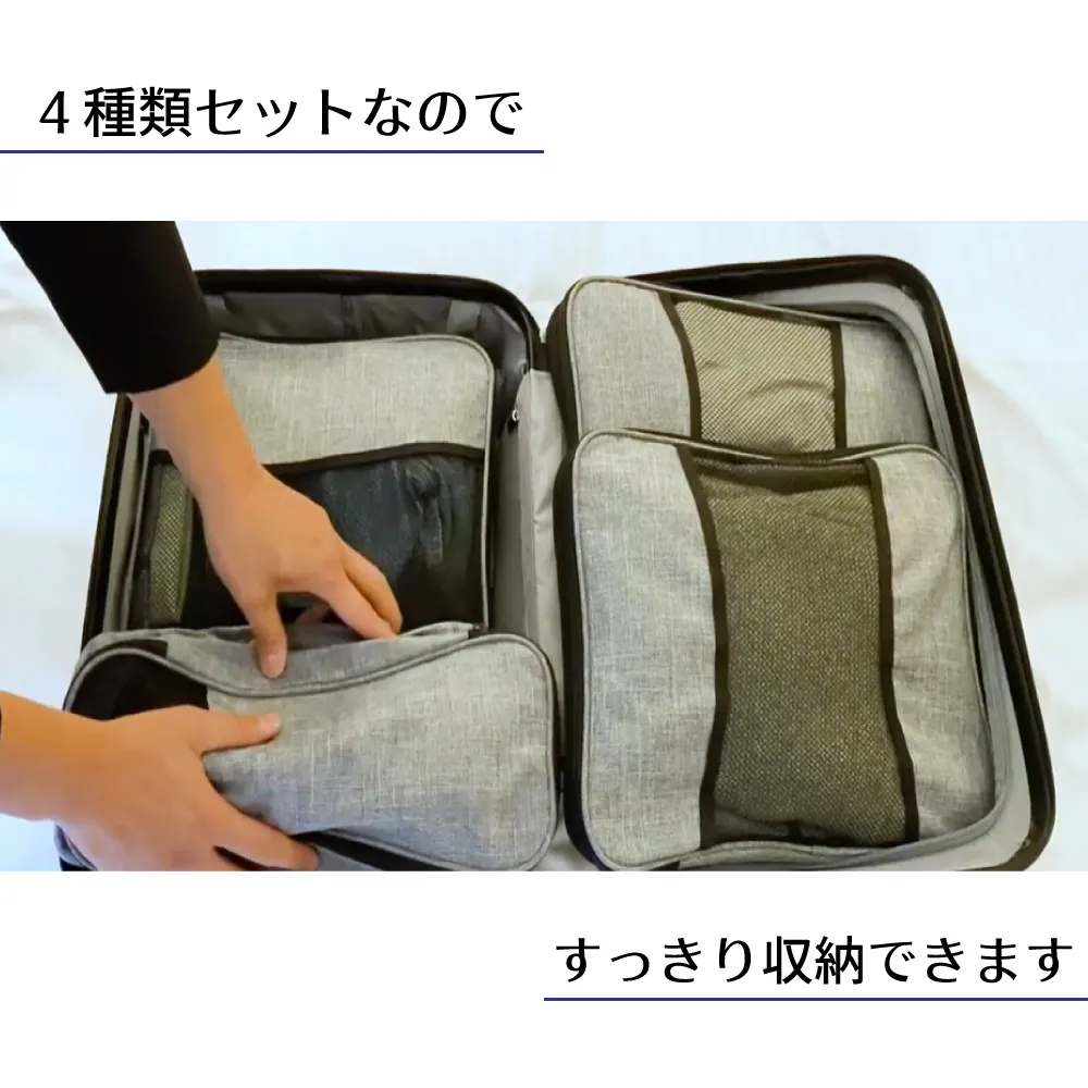 ・ 複数の収納バッグでの仕分けにより、スーツケース・旅行バッグ内の衣類の整理整頓をすることができます。