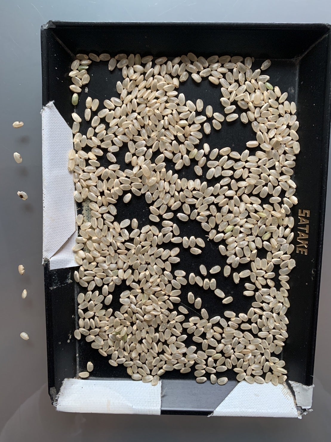 左側のような黒い斑点のあるお米が含まれる可能性がございます