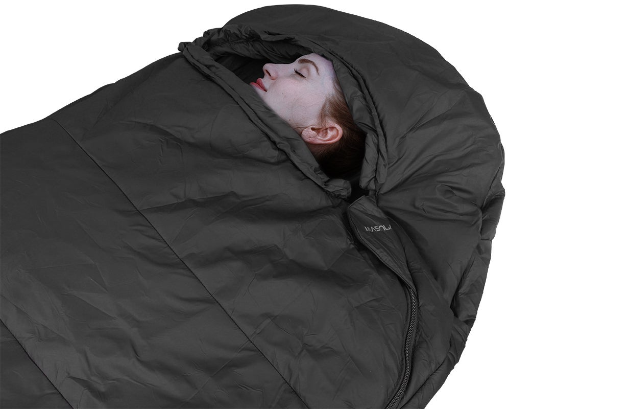 マミー型(人形型)。圧迫感がない上に寝袋内で自由に寝返りを打つことができるので、夜から次の朝まで快眠できます。また、起きたくないように感じさせ、快適に眠ることができます。高いフィット性があり、保温性・気密性に優れているので、暖気を外に逃しにくくなっています。外の気温に影響されにくく暖かくして眠る事ができ、冬にアウトドアをする時に頼りになります。