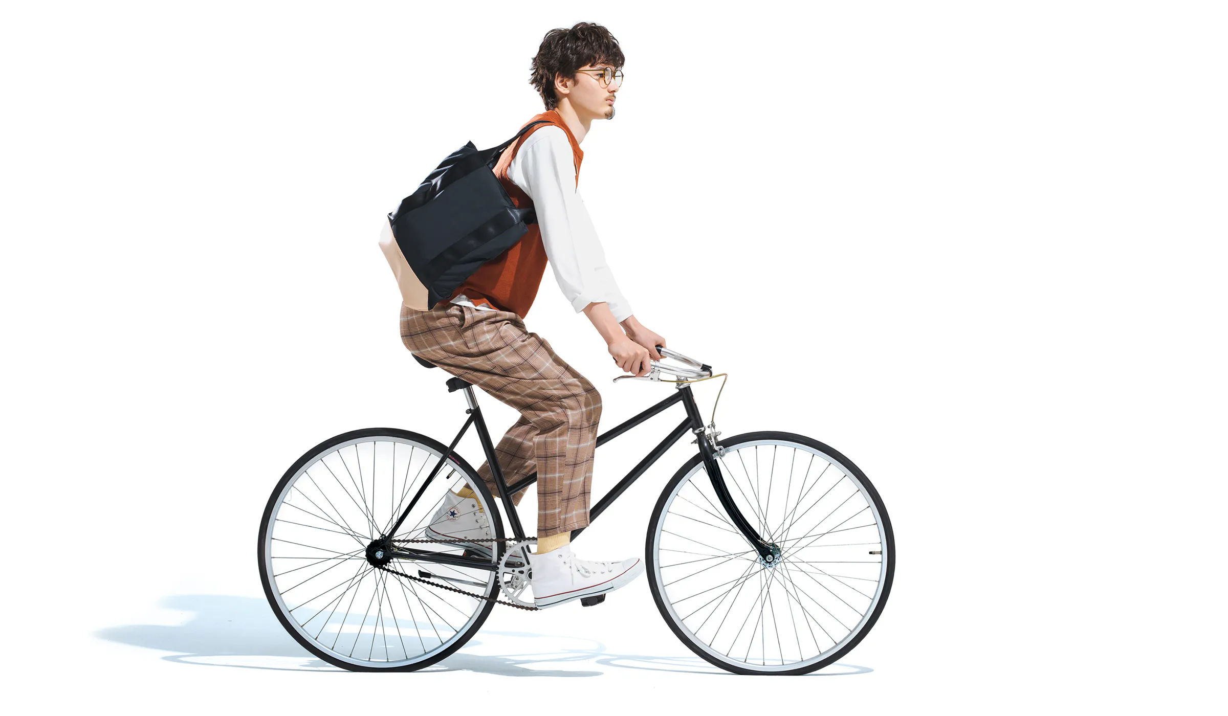 リュックのように自転車、バイクに安全にストレスなく乗れる!