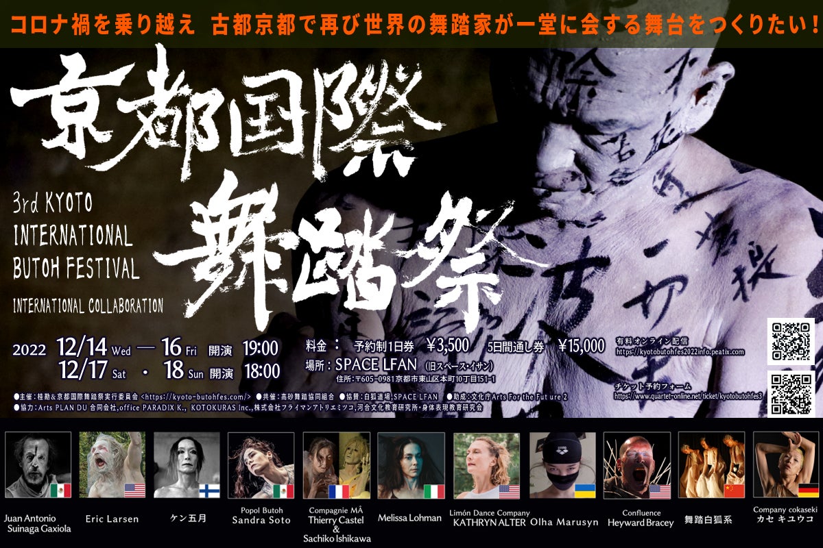 令和元年、幸運にも京都市から芸術賞をいただき、私は恩返しをしなければと腰を据えて京都の文化のフリンジを耕す決心をしました。幸い私の40年近い舞踏行脚で多くの芸術家と知り合う機会に恵まれ現在に至っています。