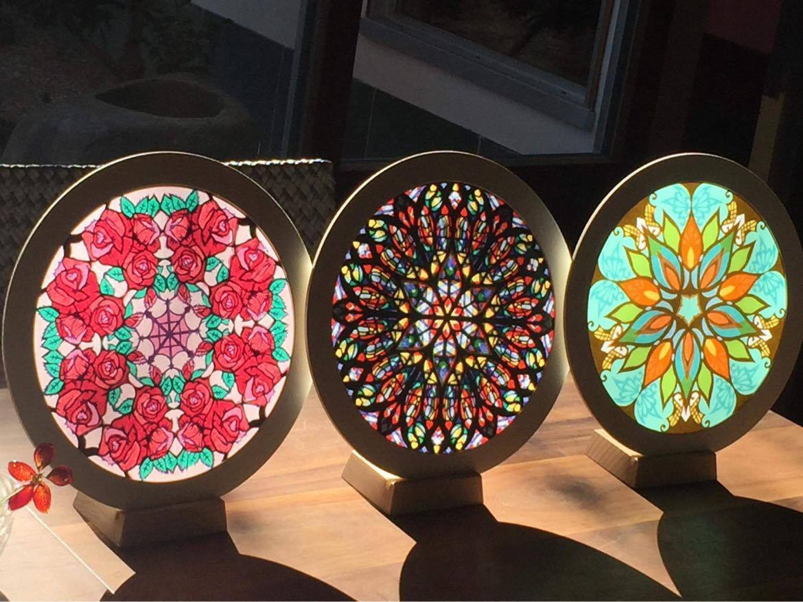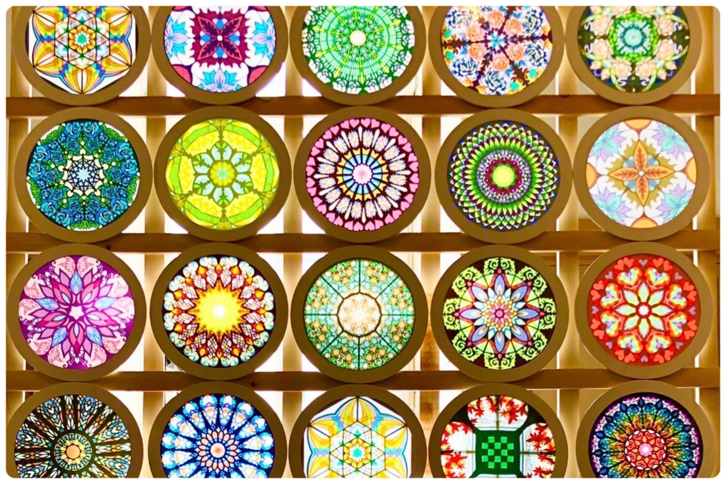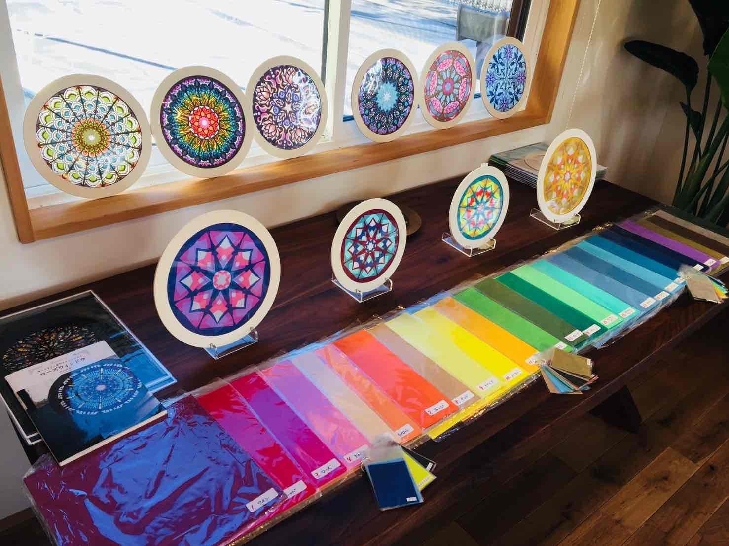 制作したり眺めたりすると、色と光と幾何学によって、ナチュラルに自分の心が整い、本来のチカラや幸福感を取り戻します。写真では伝えきれない実物のローズウィンドウの迫力や凄さをぜひ体験していただきたいという思いで講師活動をしております。