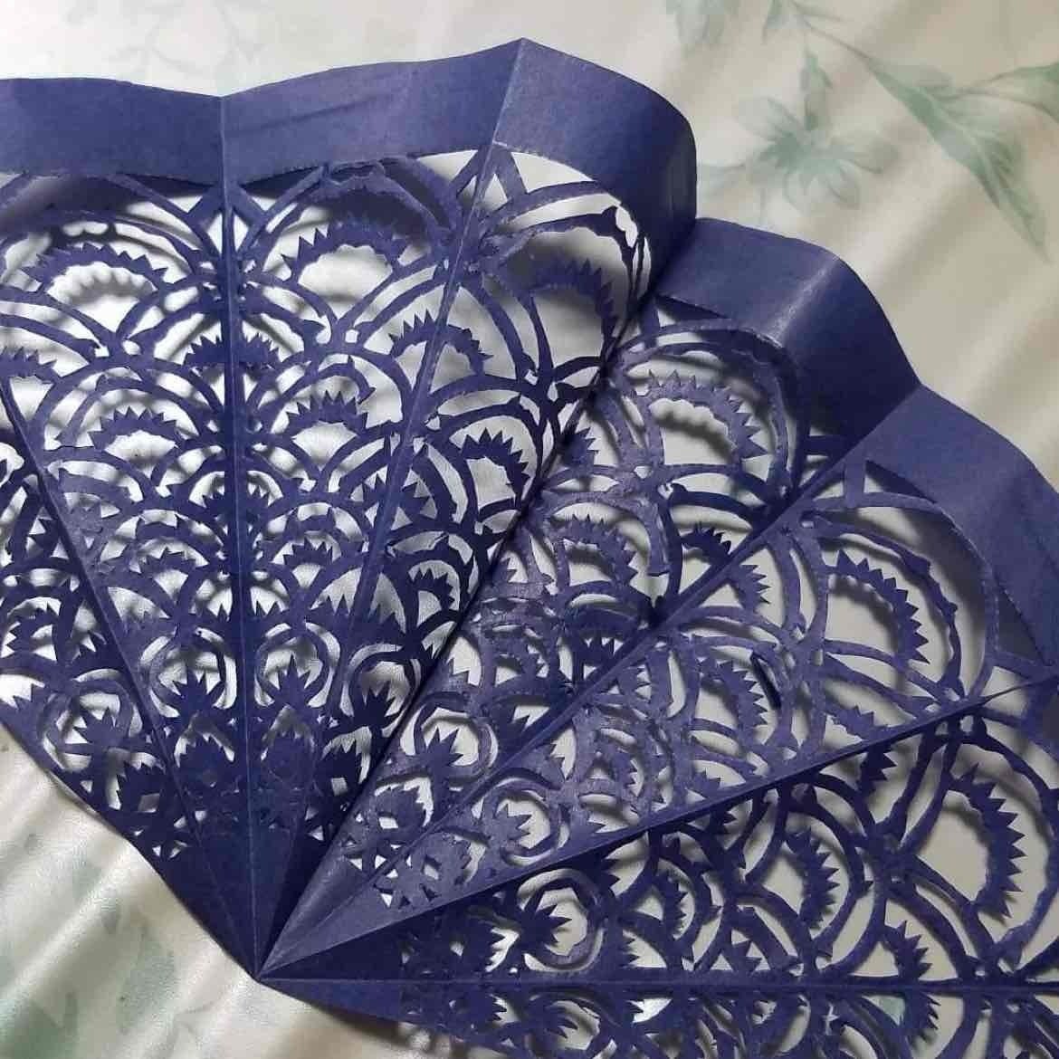 まるで魔法をかけられたかのように繊細にカットされた薄葉紙が、一枚また一枚と重なっていくごとに現れる色模様…最後の一枚が重なる時、溢れ出す色彩(いろ)とりどりの空間…その世界に引き込まれる。制作時にいつも鳥肌が立つ瞬間です。その瞬間と時の積み重ねの中で見え隠れする 〜ローズウィンドウの向こう側〜 一緒に行ってみませんか?