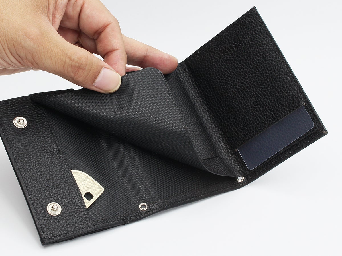財布中面のカードポケット裏生地には、磁気干渉防止シートを内蔵しています。