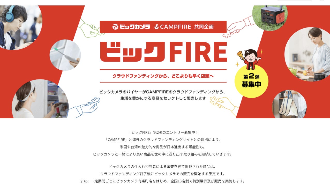 これはCAMPFIREとビックカメラの共同プロジェクトで、