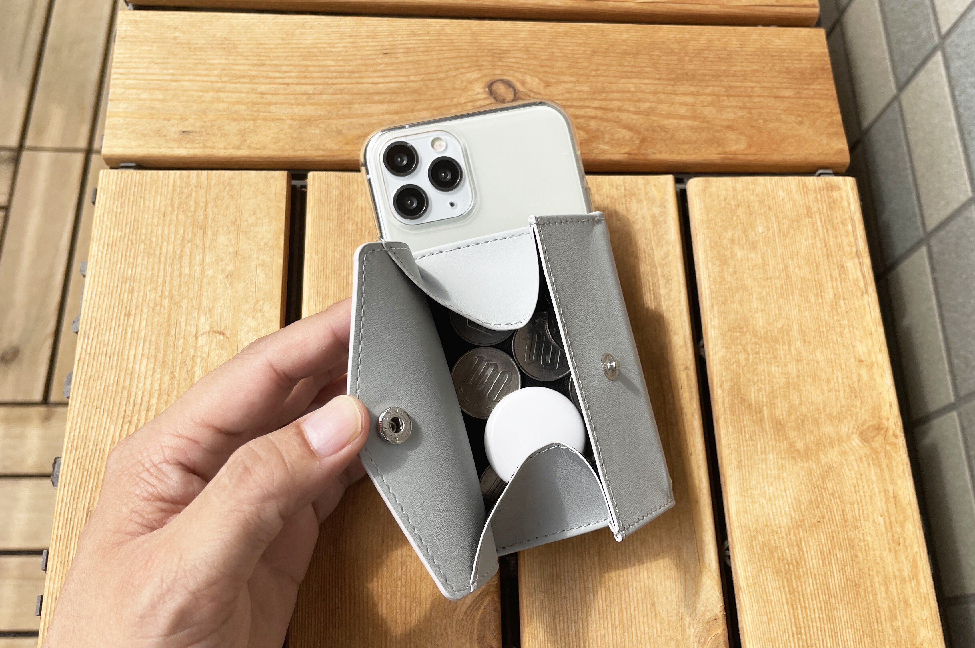 こんにちは 39thanksです。今回の「and W」は、小銭ポケットがボックスタイプへと進化しました。「小銭を出し入れしやすく、小銭の収納量をもっと増やす」ということでボックスタイプにしたわけですが、何もこのポケットには小銭だけを入れる必要はないんです。小銭10枚とAirtagを一緒に小銭10枚と鍵を一緒に小銭10枚・鍵・Airtagもさらに一緒に入れてみたり!このように、余裕あるボックスタイプだからこそ、小銭以外もさっと収納できて便利なんです♪鍵は財布内側に一箇所収納ポケットあるので、小銭の量さえ調整すれば鍵2個収納できますね。小銭派のために作った「and W」boxですが、カードメインの方でも小銭ポケットをアレンジして使うのもいいのではないでしょうか?財布の前面にポケットがあるからこそ、このちょっとした収納ポケットの利便性がいきてくるんです!ぱっと入れて、ぱっと取り出せるのはとっても快適です♪すこしでもご参考になればら嬉しいです。ご検討の皆様、ぜひ宜しくお願いします!39thanks