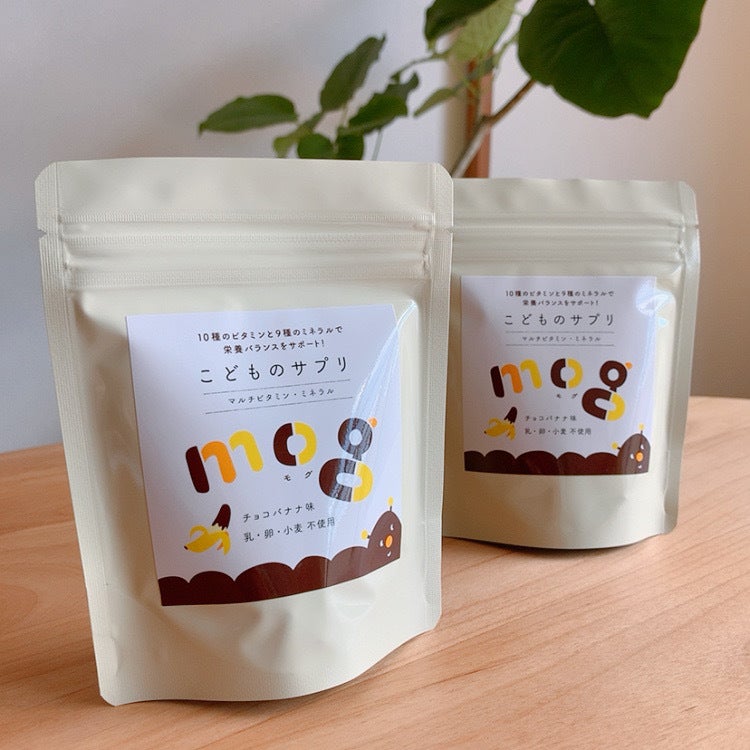 こどものサプリmogは、これまで日本になかった初の国産こども用マルチビタミン・ミネラルです。日本人のこどもの食事摂取基準や食事摂取状況から設計され、栄養のセイフティーネット(栄養不足をサポートしながら過剰摂取の心配もない)の役割をしてくれます。