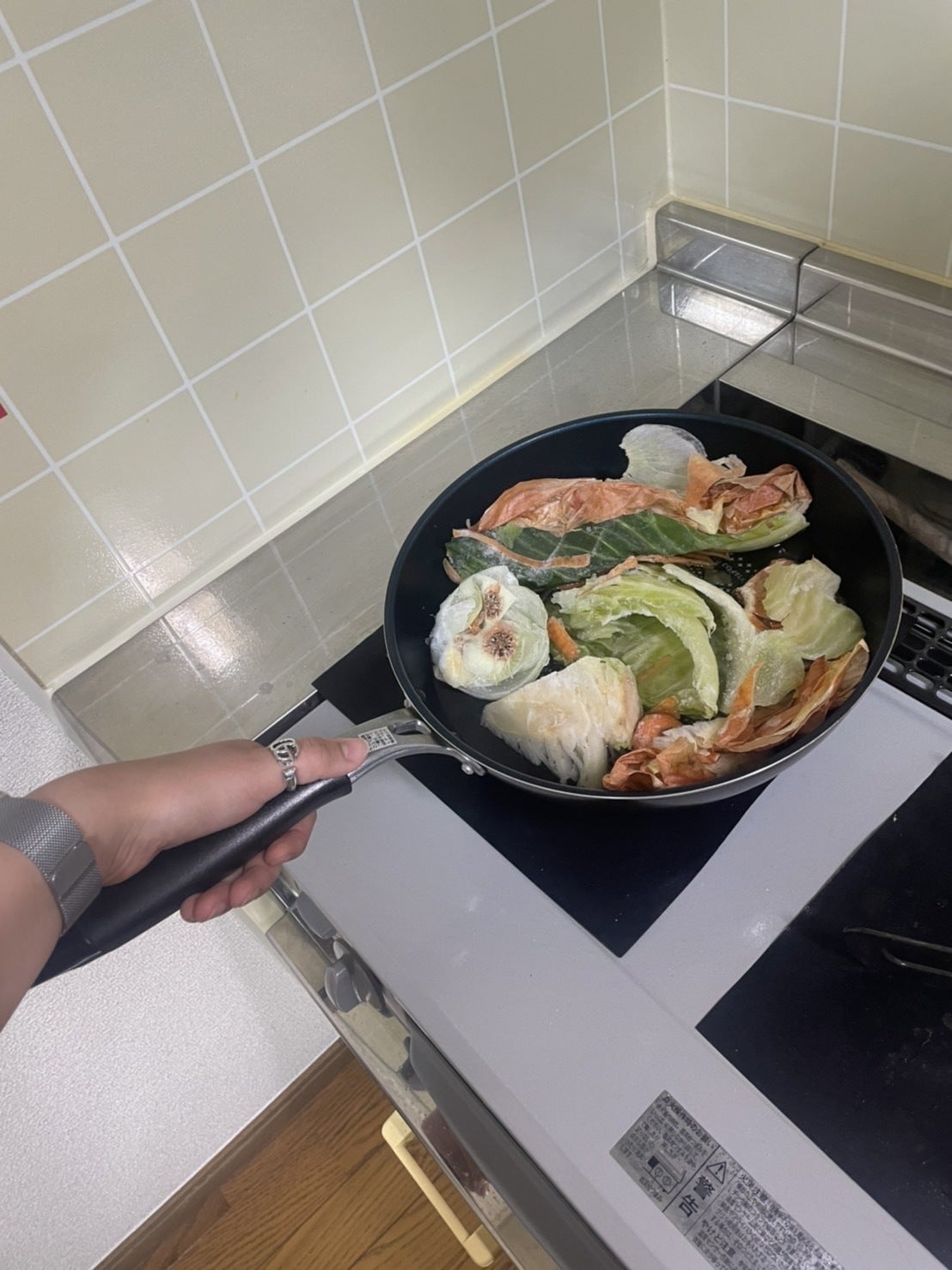 ピーマンの種、キャベツの芯や野菜の皮のいわゆる野菜くず達はよく洗って捨てずに冷凍庫の中へ。