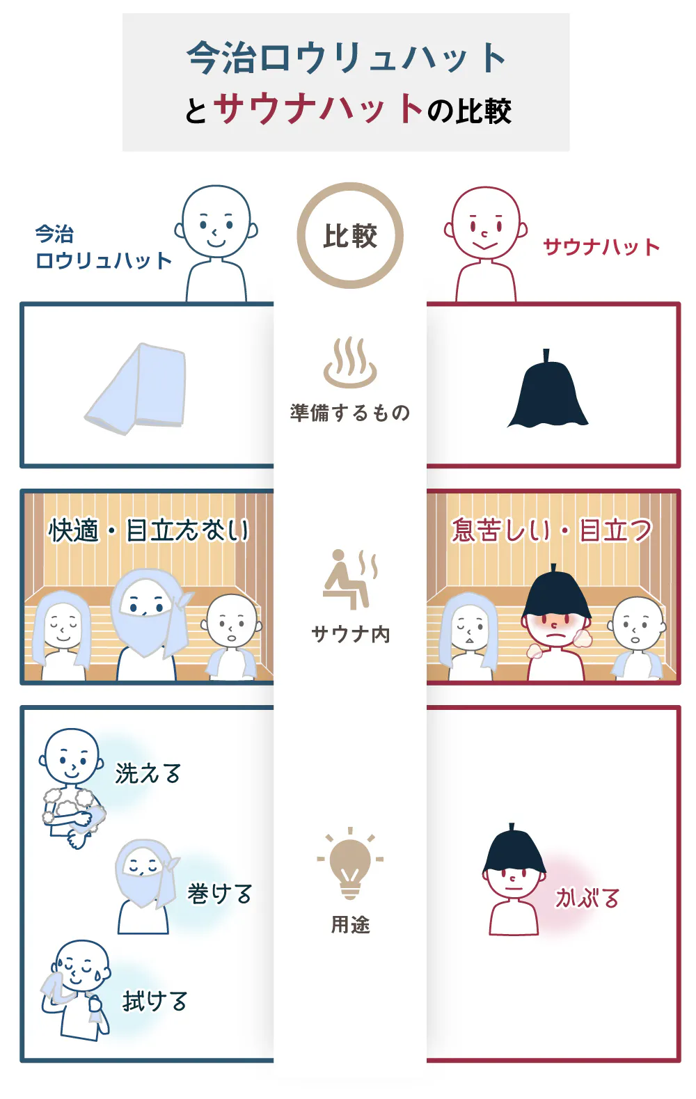従来のサウナハットと比較するとこういった違いがあります。