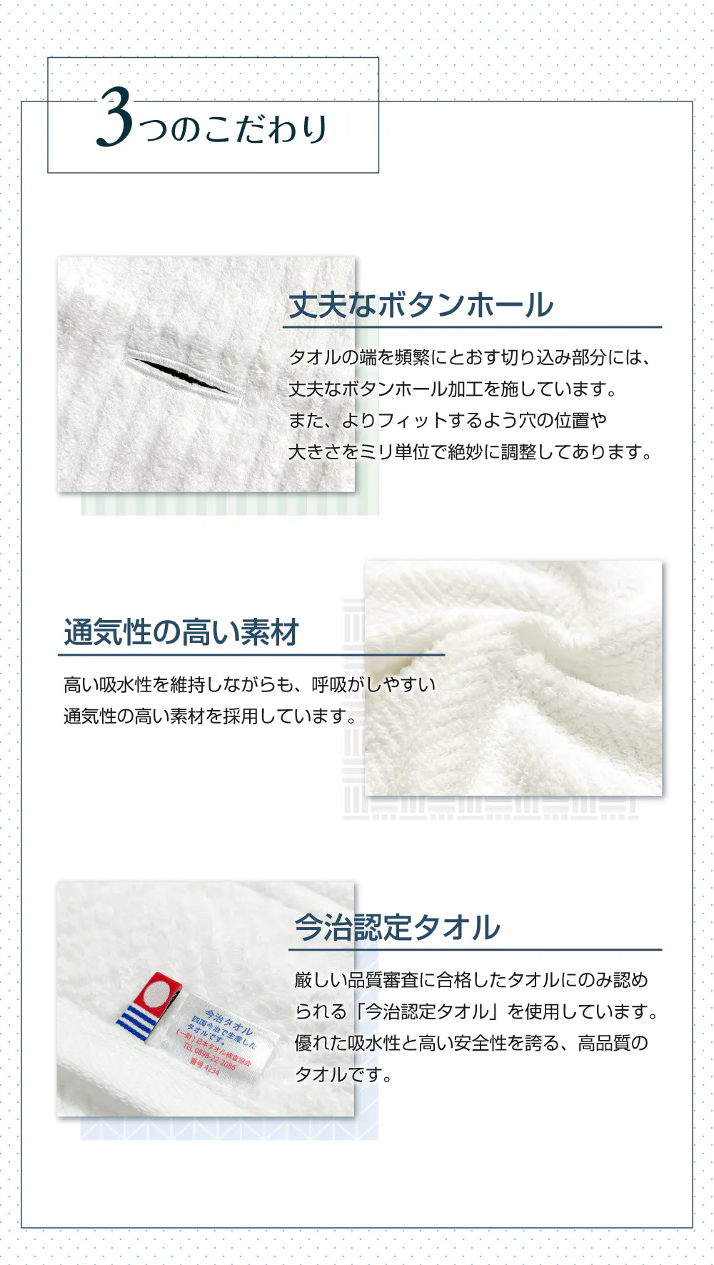 タオル生地は今治認定ブランドを使用しています。