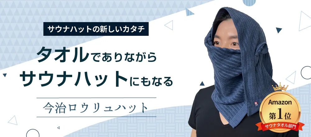 今治ロウリュハットはサウナハットとタオルの良いところを1つにした商品です。