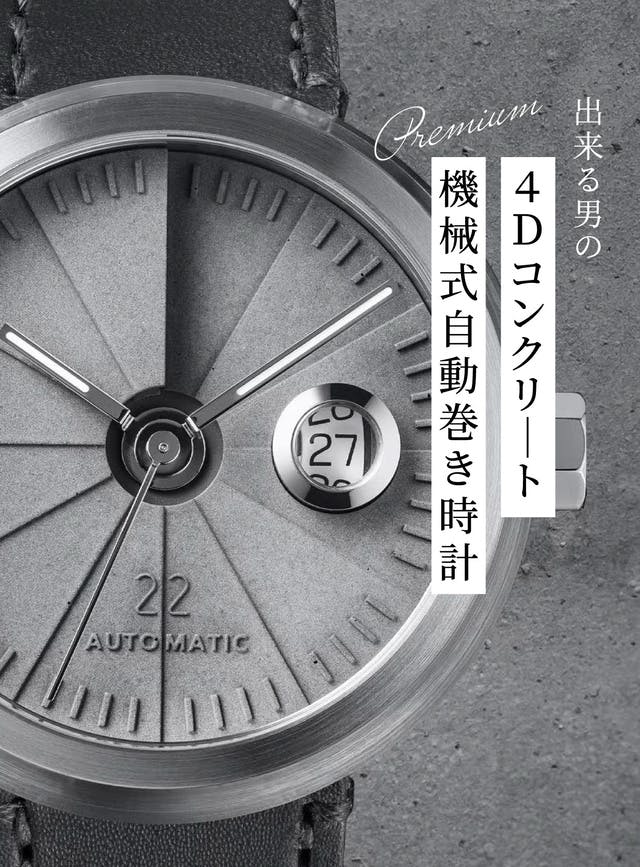 2023/06/27 12:29こんにちは。NOBLEEDGE(ノーブルエッジ)です。この度は「出来る男は休日も手元から風格を!4Dコンクリート機械式自動巻き腕時計」にご興味頂き有難う御座いました。こちらのモデルはクラファンのプロジェクトだけの限定モデルにて只今販売をしておりません。2023年の限定モデルとしてクオーツ式でより軽く薄く使い勝手を重視したモデルが完成しました!コンクリートウォッチ第2弾の商品ページはこちら▼(Makuakeのページへ飛びます)https://www.makuake.com/project/4d_concrete/?token=ab2aeea7dcde01d5a37af8909866eff1もしご興味御座いましたらぜひご覧ください。引き続きの応援お願い致します。 もっと見る出荷予定日について