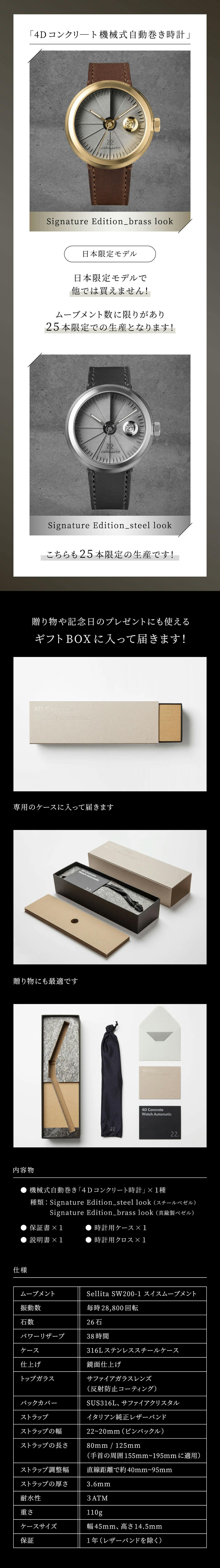 2023/01/25 17:07こんにちは!OKIAMI株式会社です!いよいよプロジェクトも残る所3日となりました!最大割引率のリターンも残り1個となっております。今月は新年会シーズンということもあり会食の場にでることも多かったのですが、「その時計カッコいいね」「珍しい時計してるね」「どこで売ってるの?」とSignature Edition steel look を付けていて会話のきっかけになりました・・・腕時計は権威的な象徴だったり、コミュニケーションの発信源だったり、機能的な側面だったり色んな面があると思うのですが、この時計は圧倒的珍しさとかっこよさで話題の中心に!ぜひ、唯一無二のコンクリートウォッチをこの機会に手に入れませんか?機械式のこのモデルは今回のプロジェクトだけの受注生産になるので一般販売は致しません!購入できるのは残り3日となりますのでぜひご検討ください! もっと見る