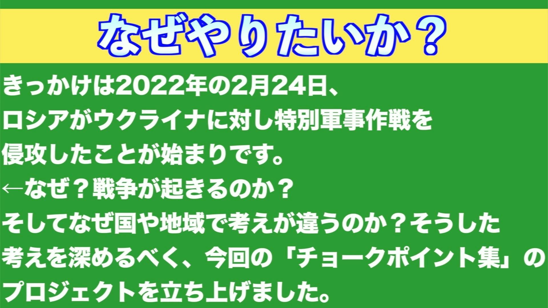 当事国だけでなく、第3者の国々も戦火に巻き込まれるかもしれない。その背景を一人でも多くの方々に知ってもらえるよう、創意工夫を尽くし行うべきではないのか?