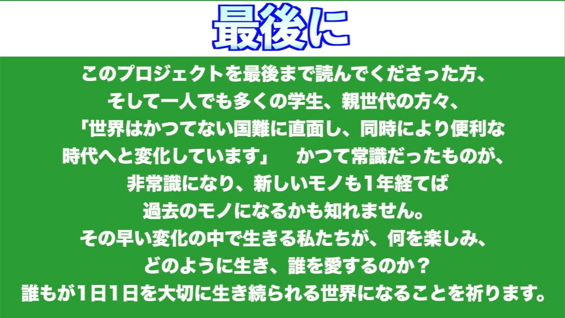 今日まで一人の学生の私を含め、多くの方々が様々な経験をしていきました。