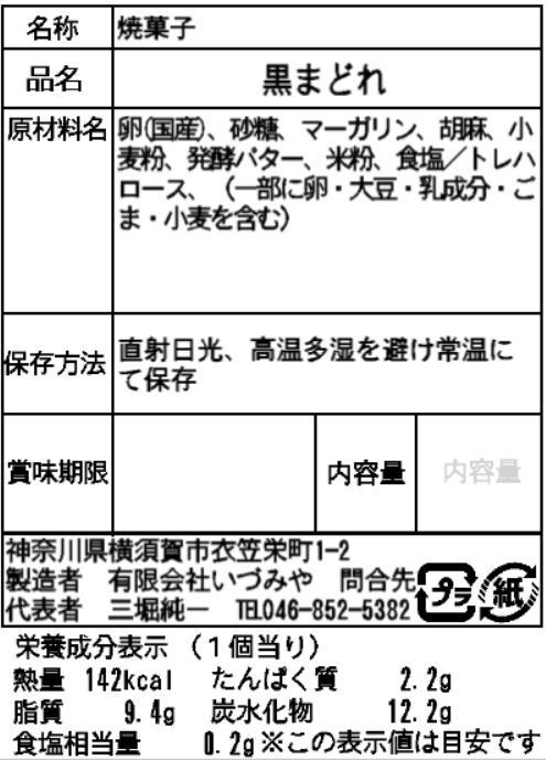 胡麻風味マドレーヌ「黒まどれ」3個 ※横須賀おみやげコンテスト金賞