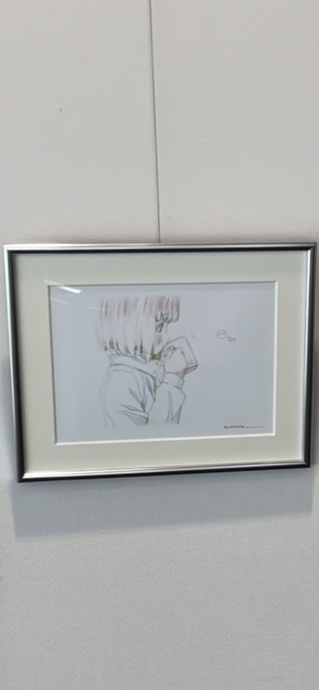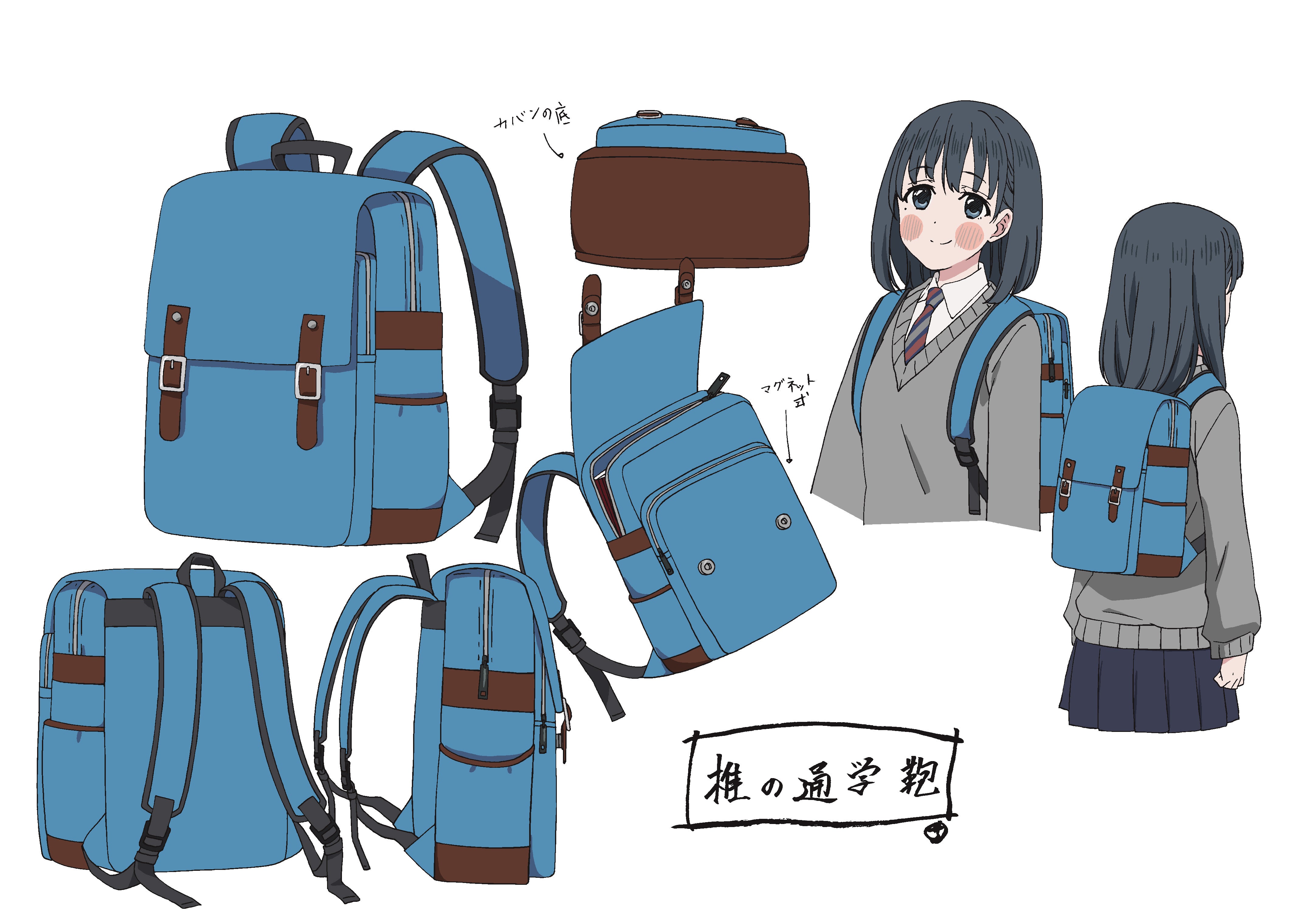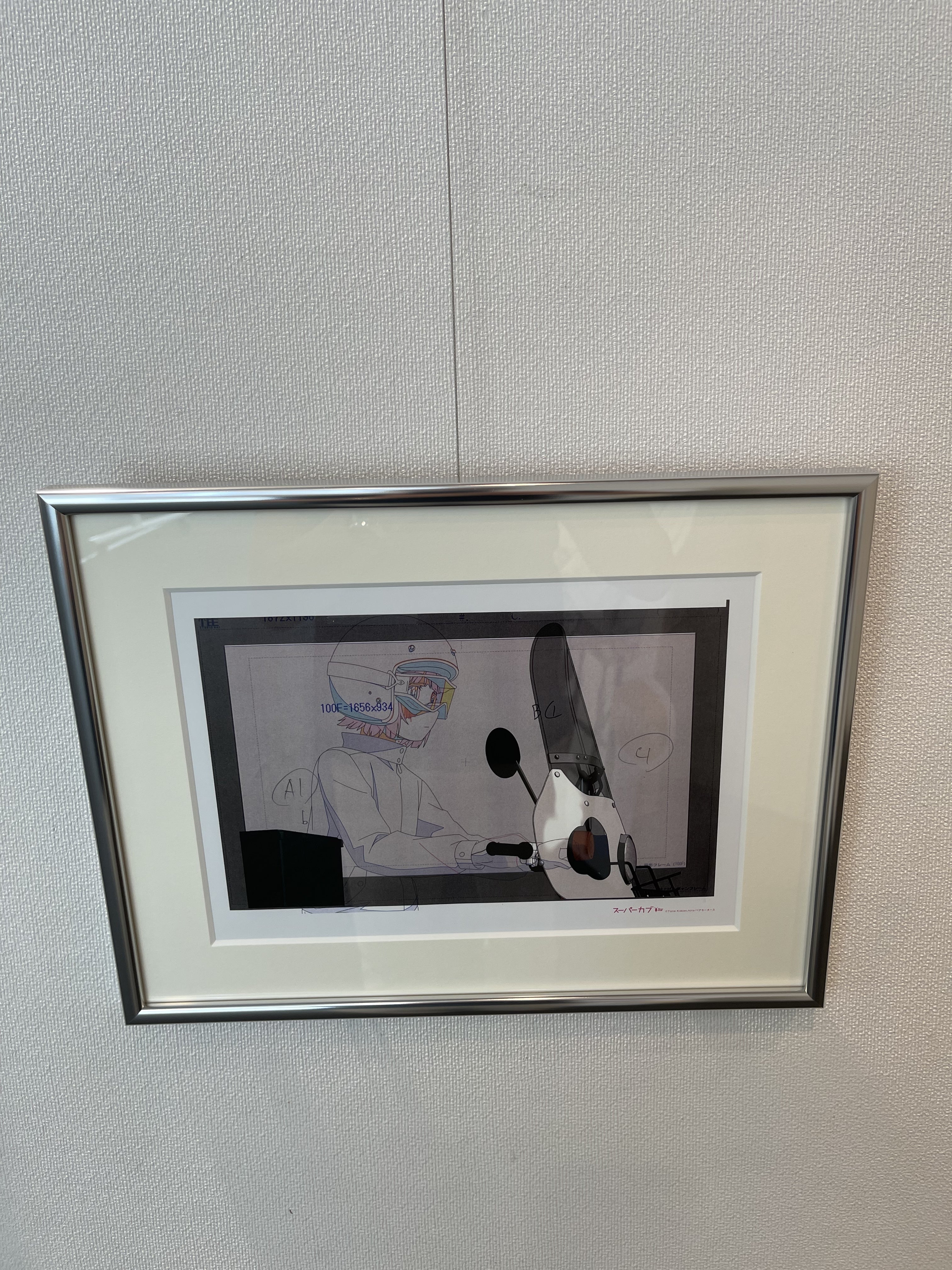 展示会では小物設定や美術設定、メカ設定等も展示しています。通常、設定資料は制作スタッフの間で使用される内部資料で、宣伝素材として一部外部に出す場合もありますが、普段は表に出てこないものです。アニメ制作作業ではとても多くのスタッフや会社さんが参加するため、そのための共通の資料として設定資料はとても大切な資料になります。今回はその膨大な資料の中からごく一部になりますが、30点の設定資料を公開させていただきました。普段はあくまでも資料として粗雑に扱われるものが、こうして綺麗な「額装」という服を着せていただいて、人前に出ることは照れ臭くもありますが、とても嬉しい瞬間です。