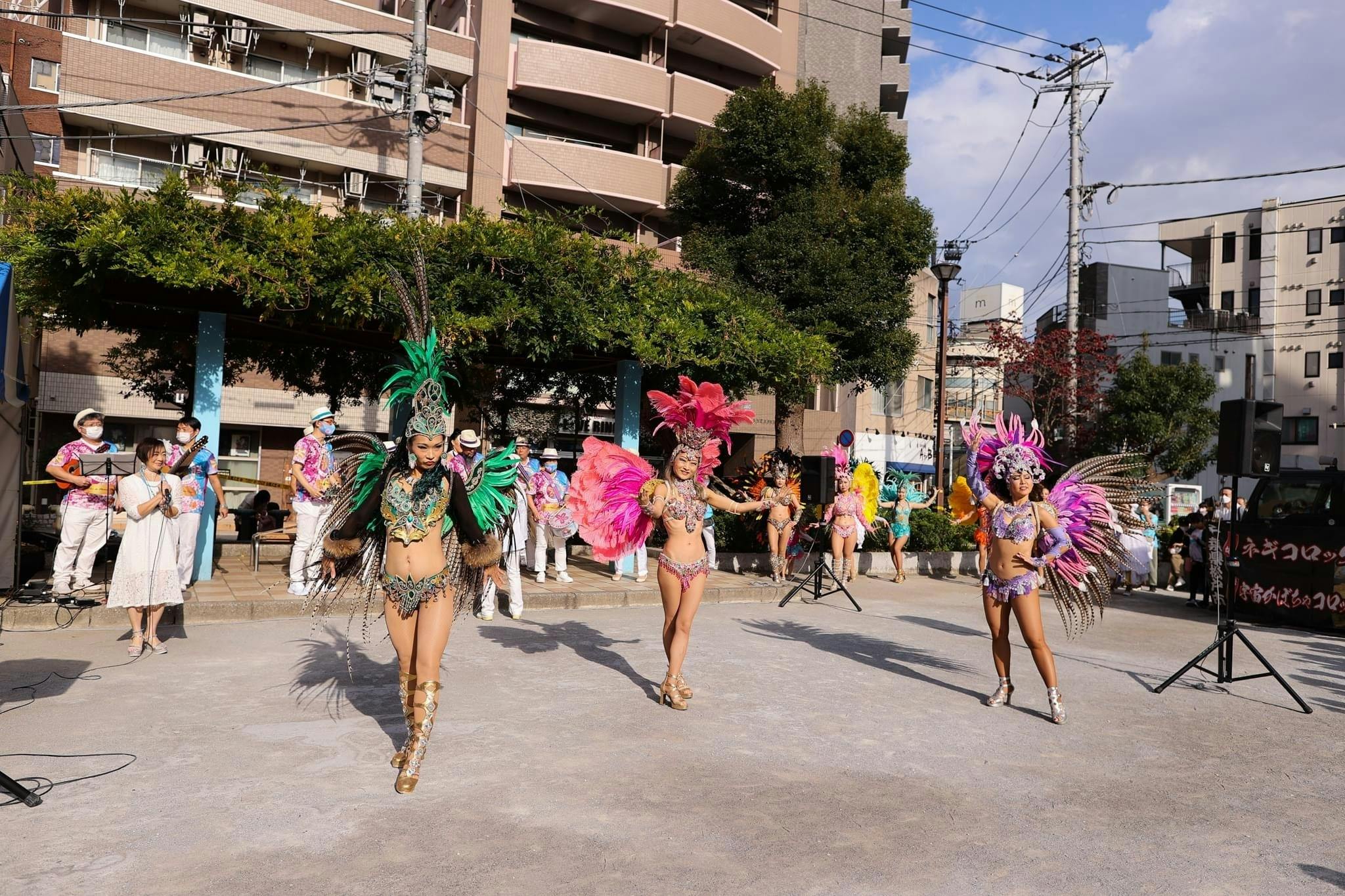天気も良く、お客様もたくさん集まってくれました。1時間弱のパフォーマンスを、最初から最後まで観てくださる方が多く、サンバで大いに盛り上がってくれて、最高のイベントでした!