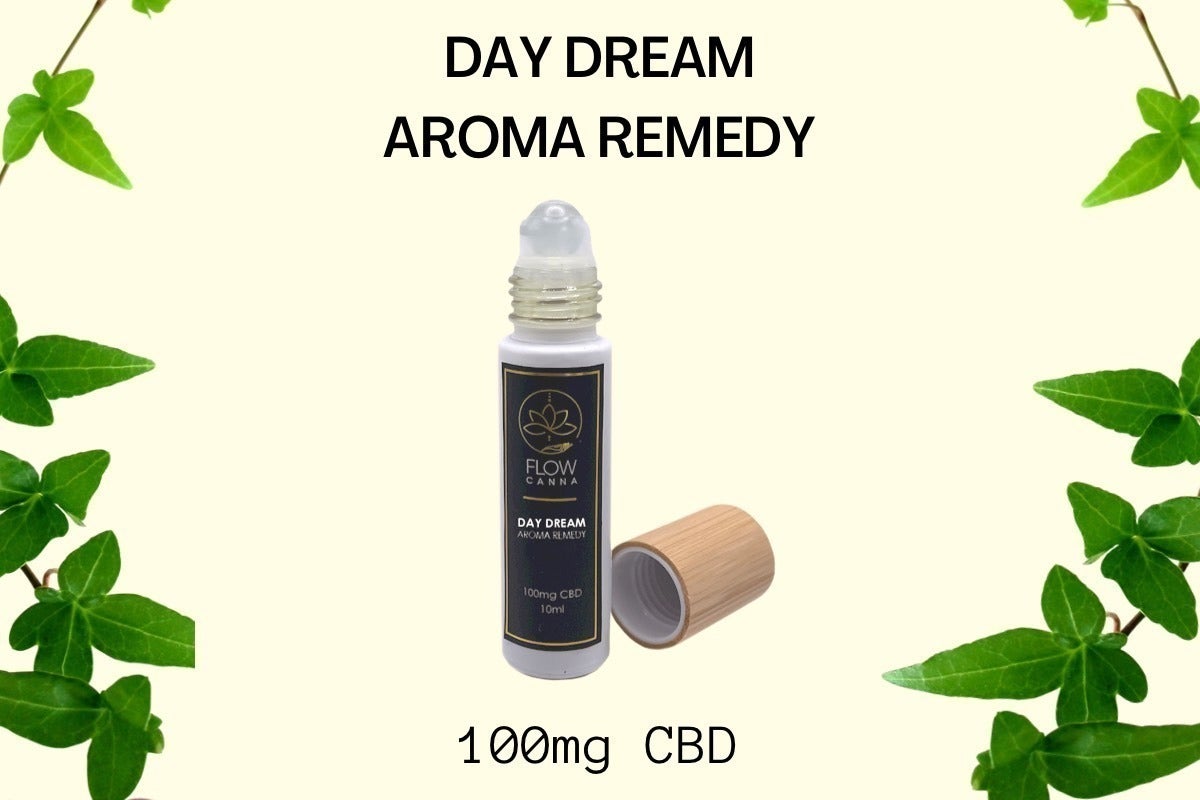 FLOW CANNAの"DAY DREAM AROMA REMEDY"ロールオンは、エッセンシャルオイルとCBDをブレンド、配合して肌をやわらげ、すこやかに保ちます。CBD成分は、頭痛や吐き気などを調節するエンドカンナビノイド(ECS)に作用し、身体を内側からサポートします。ホッとしたい時、リフレッシュしたい時にピッタリです。