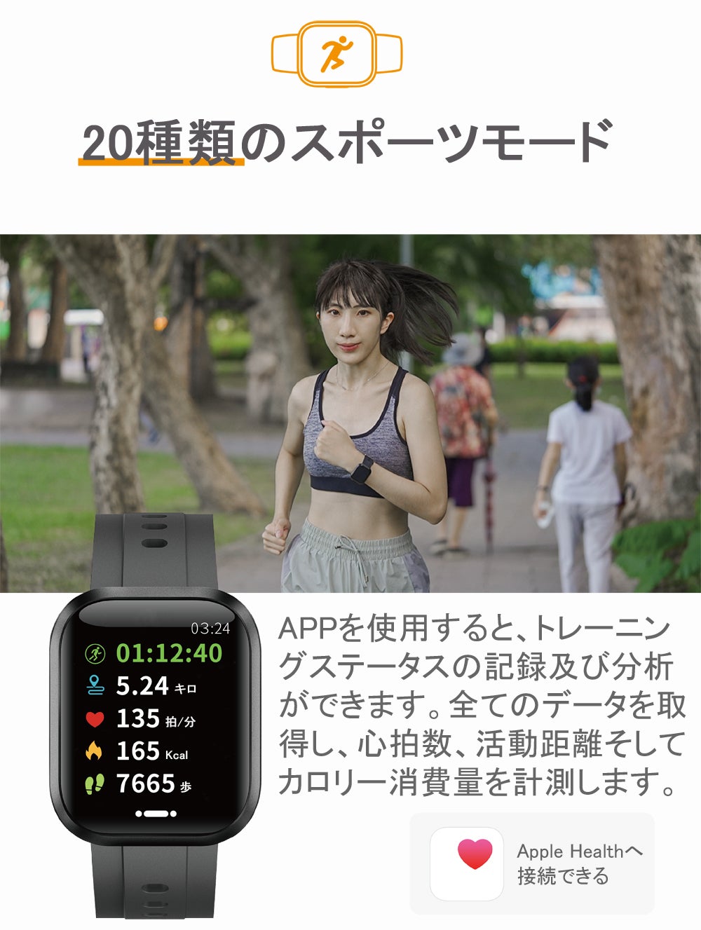 14日間連続使用可能なE-Joy Smart Watch Plusが、体温、血中酸素などの健康指標を測定するだけではなく、運動に合わせて20種類のスポーツモードを選択することも可能です。一つのアプリに7台までのデバイスを追加でき、家族分のデータを一括管理・分析ができます。