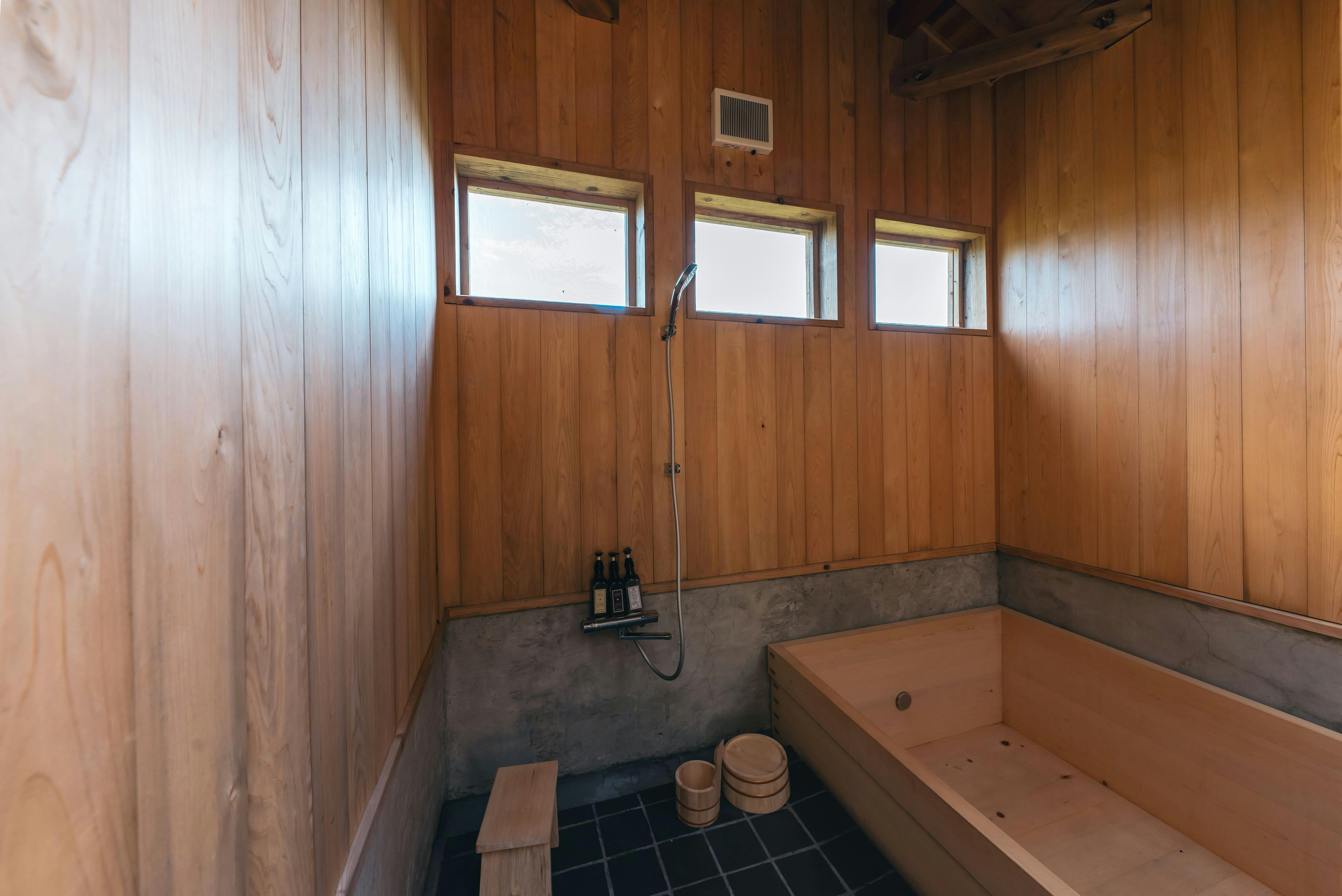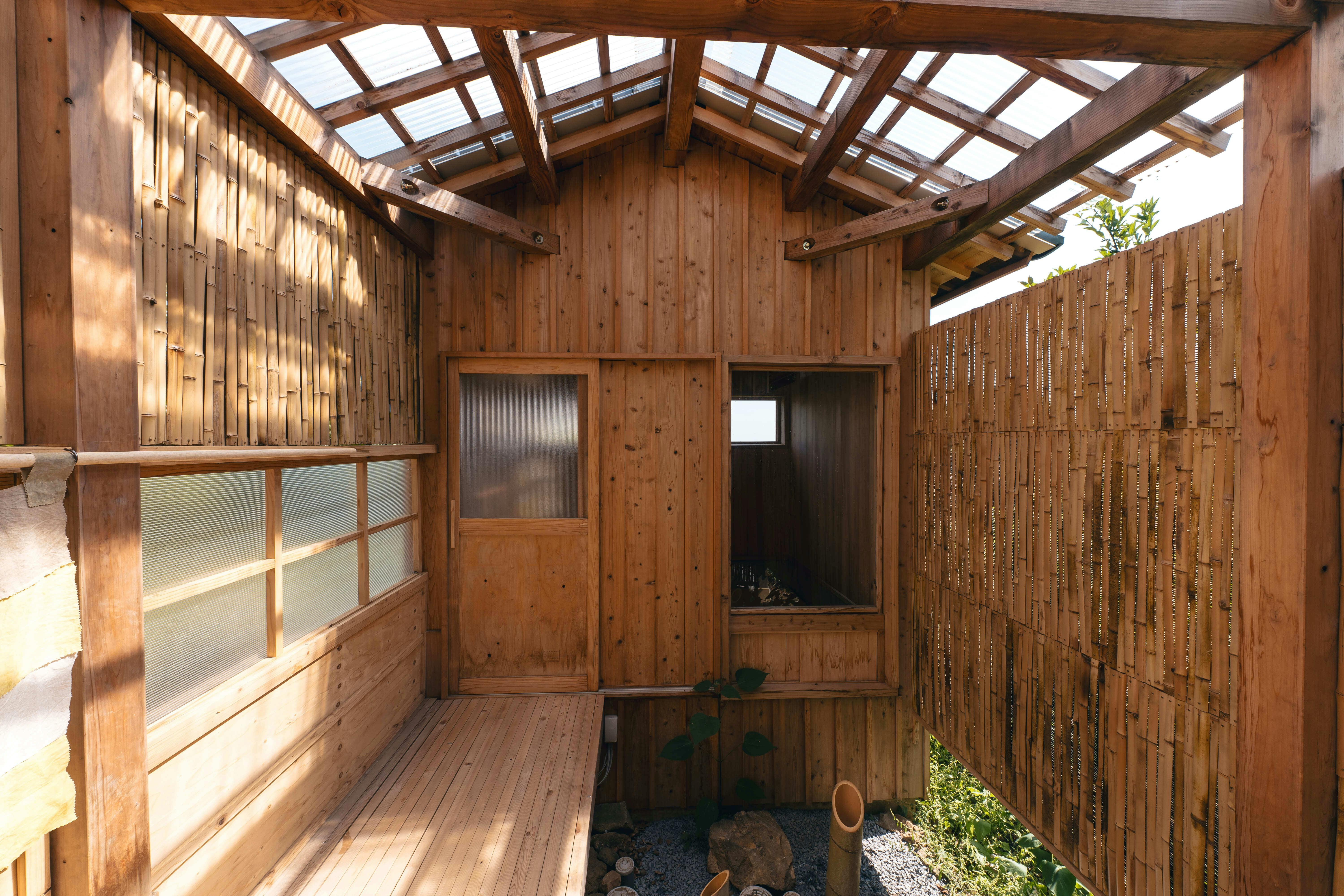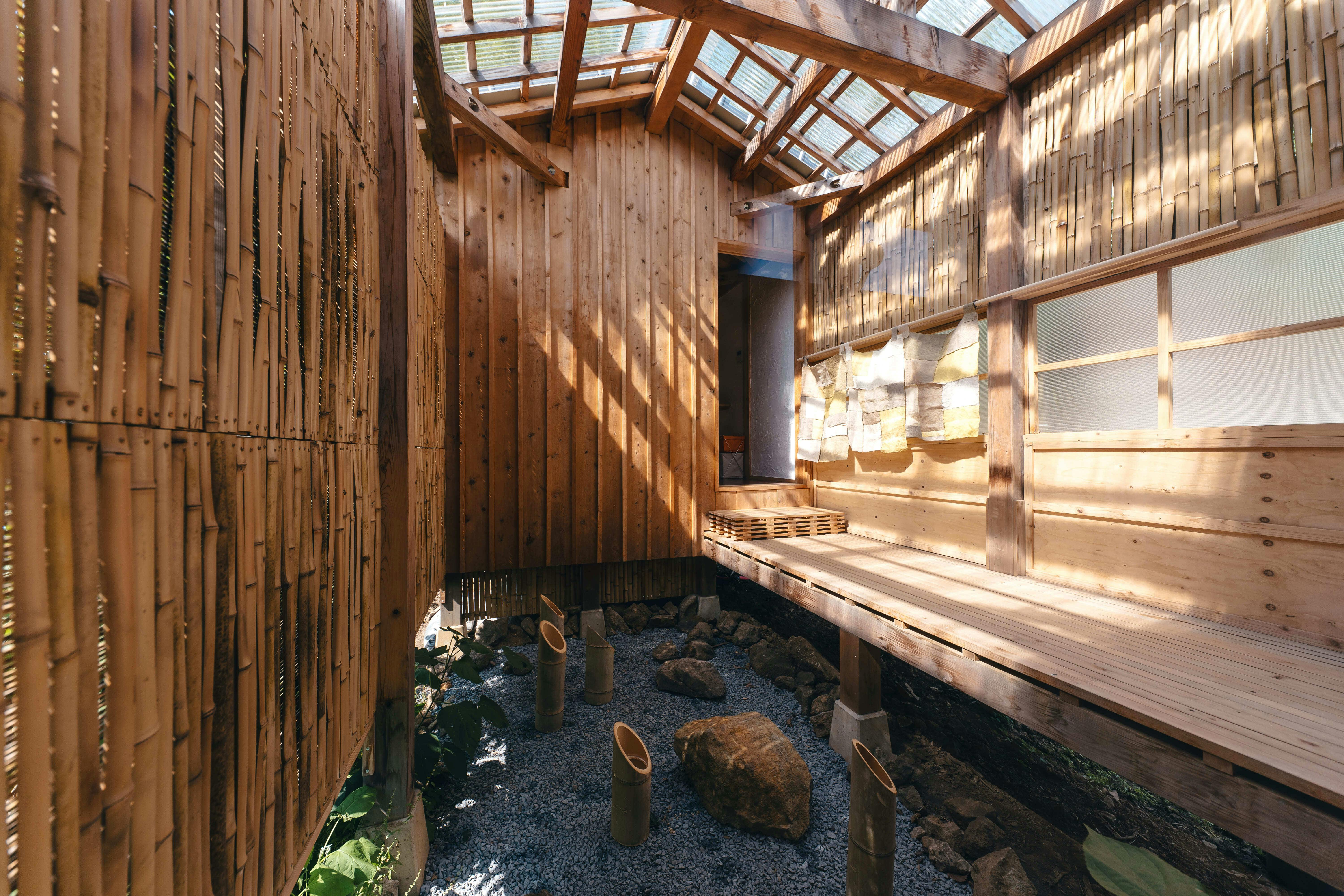 続いて、実際に完成したお風呂をご案内。外から見るだけでなく、建物の中にも入っていただきました!