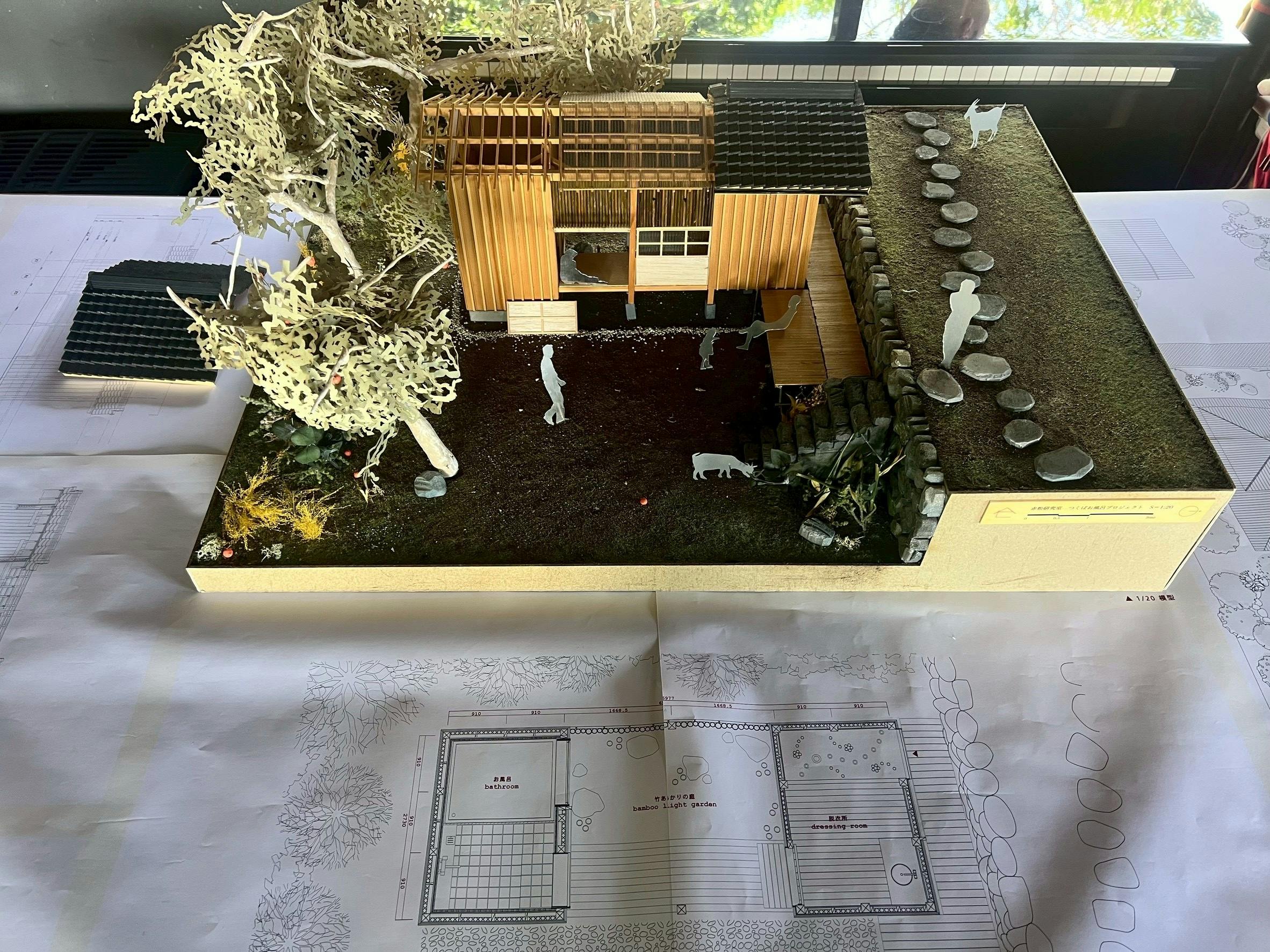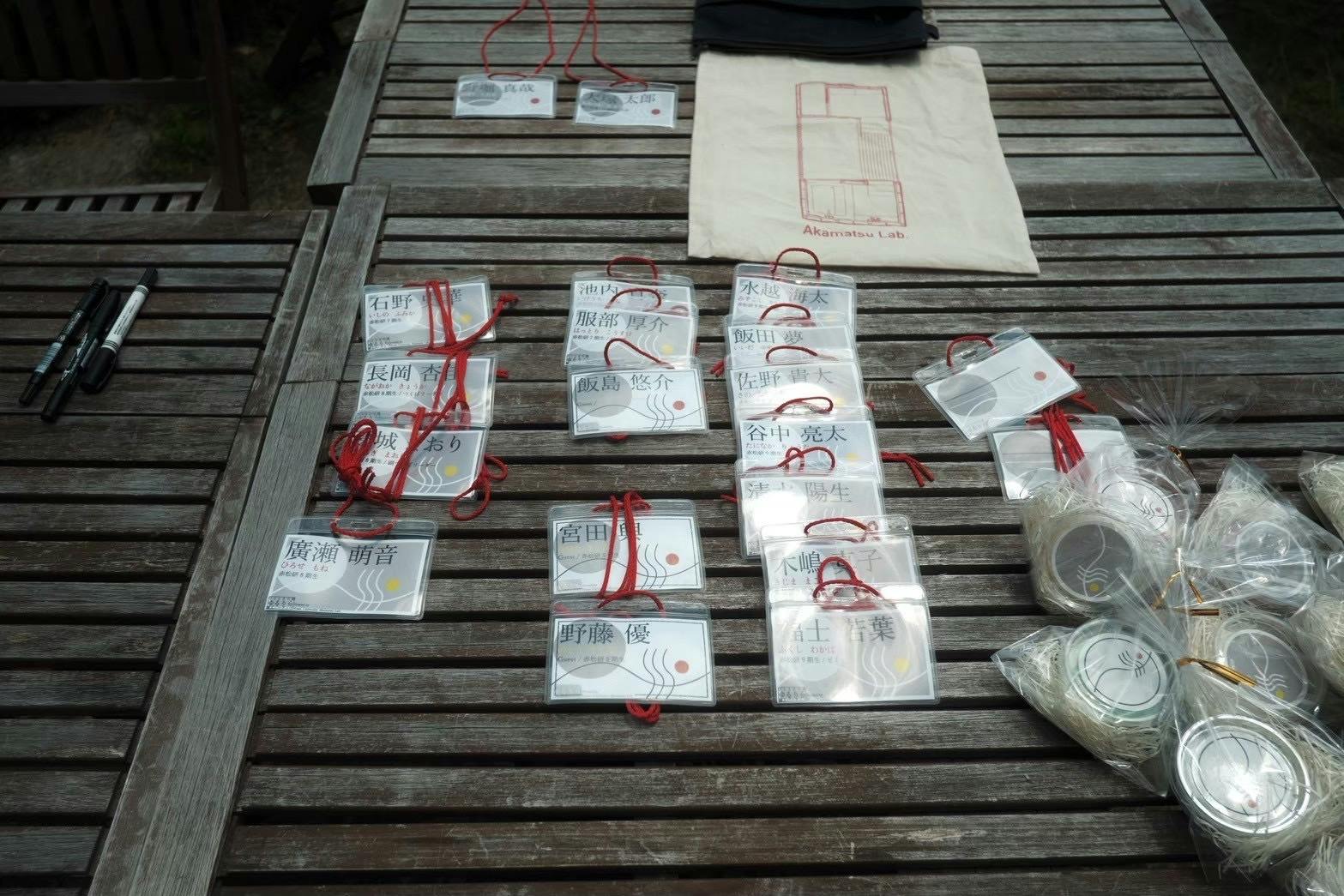 受付ではまず、名札を付けていただき、その後コワーキングスペースにてプロジェクトの経緯やお風呂の設計・施工について、図面や模型を使って説明させていただきました。