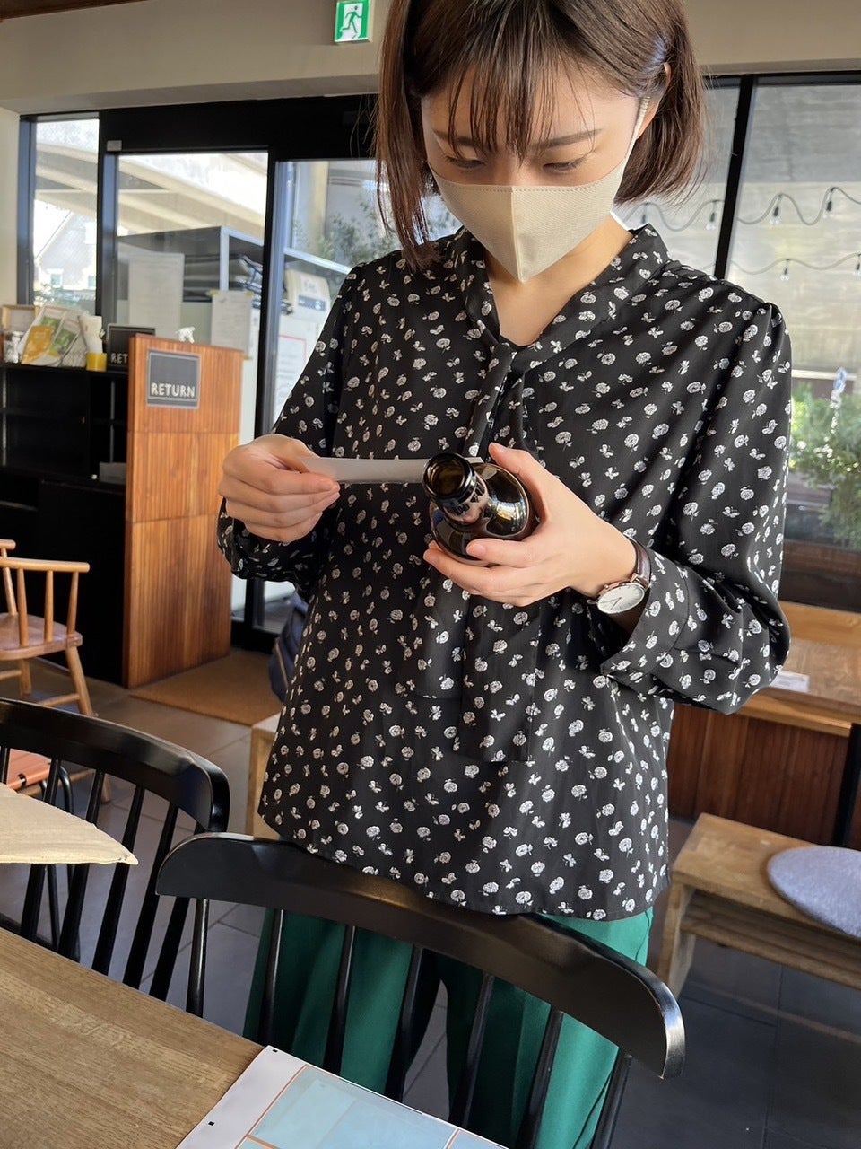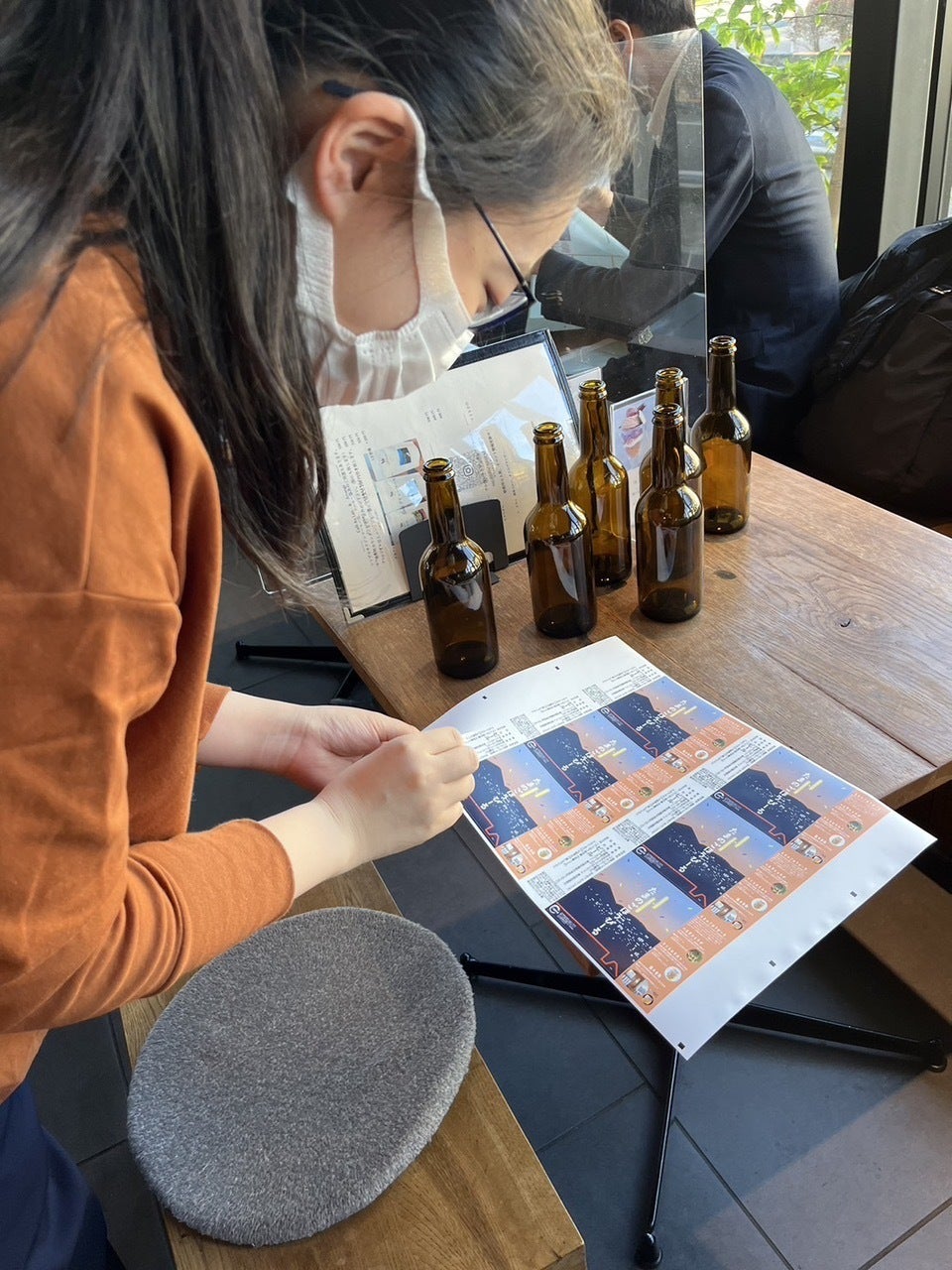 完成したラベルを瓶に貼る作業を行いました。